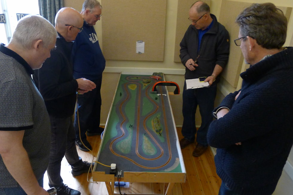 Time for lunch and to catch up with some of the other groups. Marc and Martin from St Albans Slot Car Club were enjoying the big Ninco 'Stage 7'...