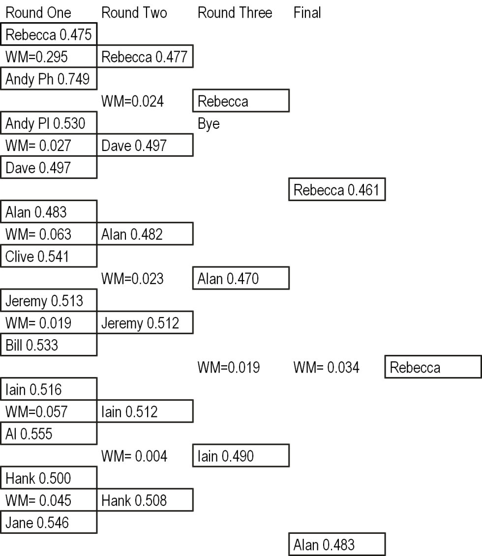 That gave us a semi-final between Alan and Iain to meet Rebecca in the final...