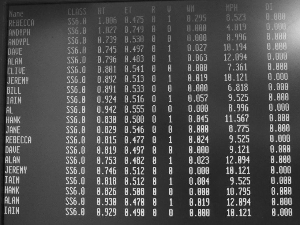 Rebecca vs Dave was the Super Stock final in November's race. The result was the same - Rebecca beat Dave. Rebecca's time was 0.477 and Dave clocked 0.497 - the winning margin 0.024 seconds. Rebecca had booked herself a place in the final.