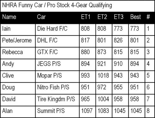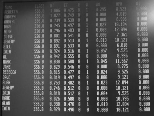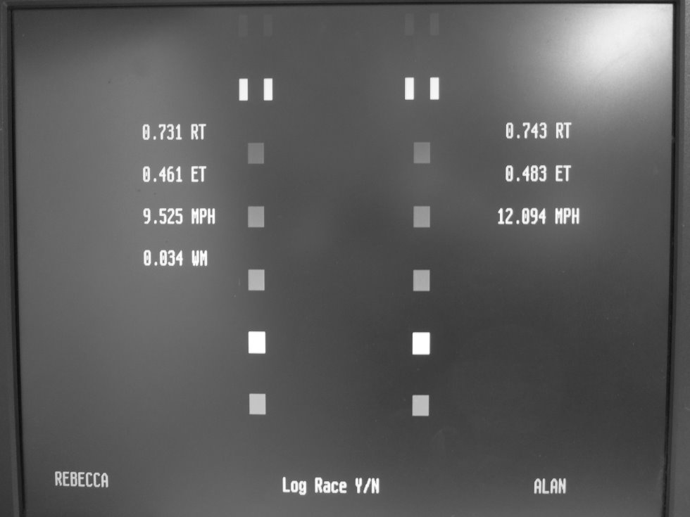 Jeremy was away well in the second race, but Alan finished very strongly. Everyone looked to the screen to make sure - and yes, Alan had it by 0.023 seconds. Alan's ET was 0.482 and Jeremy's 0.512.