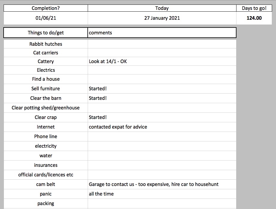 I will feel happier when we actually have somewhere to live! I did a little spreadsheet that tells me that time is shorter than I think! Last but one sums it up I think.