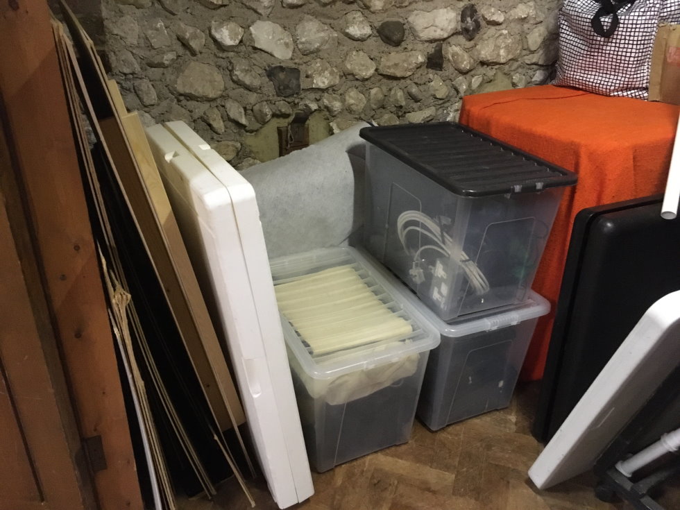 We've taken almost everything out of the cupboard to clean, evaluate, repair or replace. So there's only the HO track, two hdmi monitors, cables, bridges and mdf store remaining for now...