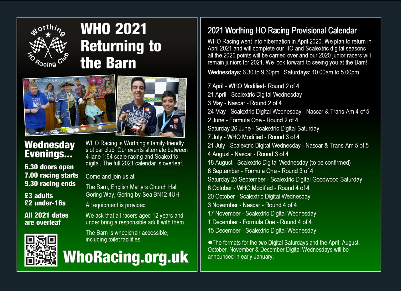 Outdoor events are much safer. There are regular outdoor Toy & Train Fairs just up the A24 at Ashington and over at Ardingly near Haywards Heath. These take place on Sunday mornings. Local retailer Weevils Slot Cars are there with new and used cars, sets and accessories – and there are often other second-hand cars for sale on other people’s tables. Perhaps some of us can meet up there for some retail therapy and a catch-up over the summer? I intend to be at as many as possible. Keep an eye on the WHO Facebook page. A list of events can be found here: https://www.modeltoyauctions.co.uk/news/...838269BB6/