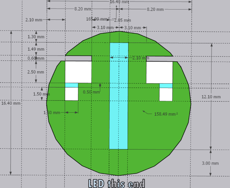 Considerations today: defining the exact length of the slot on the decoder. Working out wether the decoder can actually be fitted and removed in real life. Experimentation with another LED. Sourcing parts. Antenna considerations. R1 track piece CAD drawings to prove clearance. The realisation that adding the LED, and the resultant shorter guide slot is paramount and that every 0.1 of space use efficiency was required to keep the dream alive.