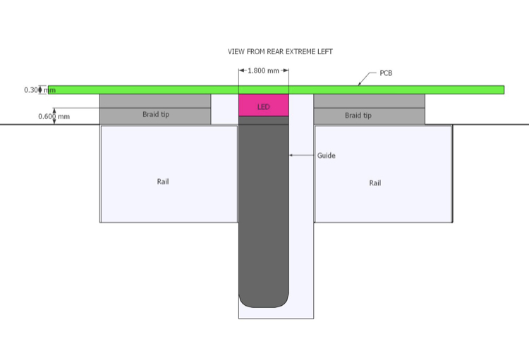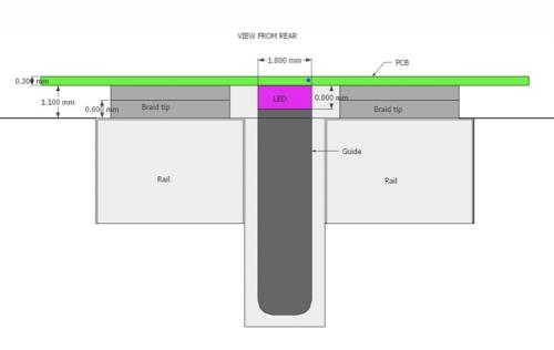 The way it’s designed it’s IMPOSSIBLE for the LED to touch the rails, in any scenario or track system.
