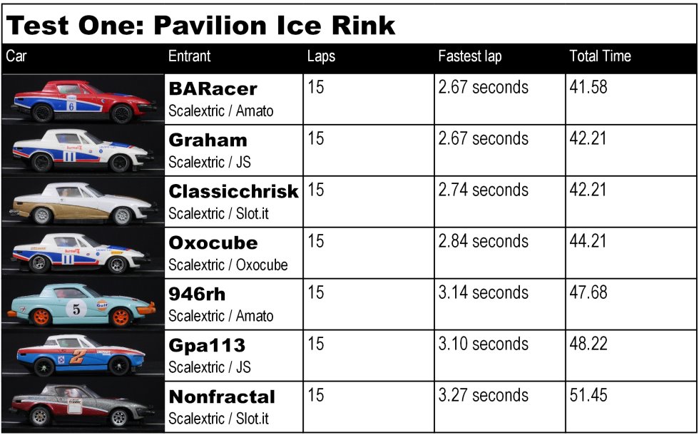That's the process when I'm setting up a car - but I've adapted it to time five laps for this second TR7 test. I start the LapTracker app when the car is at a stable speed - timing begins when the car triggers the phone's camera and then times the next five laps. I have noted the times and the voltage. The Test Two score is the sum of the ten laps - five in each direction.
