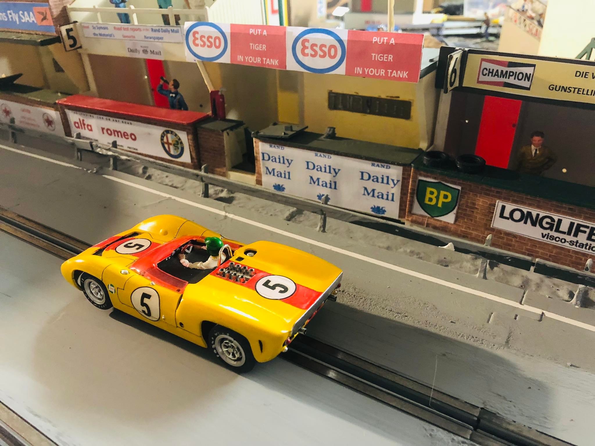 Back in the early 2000's I bought this Scalex Centre Replica made out of card stock. Really was a superb job. They are now my'vintage' as I have had a few of his buildings for so long, and thus I will not change or delete the scalextric signs, and although nothing like this was on the original track, this is another cap 'doffing' to my scalextric origins.