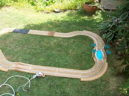 The straights are longer, an extra high bridge has been added plus a length of Scalextric 'dog turd' track. I have also rigged up a couple of Parma controllers to replace the rubbish SCX ones which should give better throttle control.