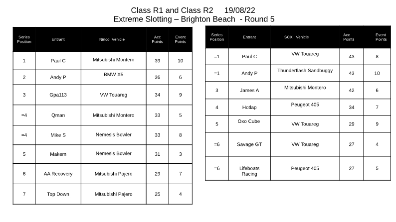 Well another great run, many thanks to Andy at Brighton for running our cars in Round 5, only another 3 to go.