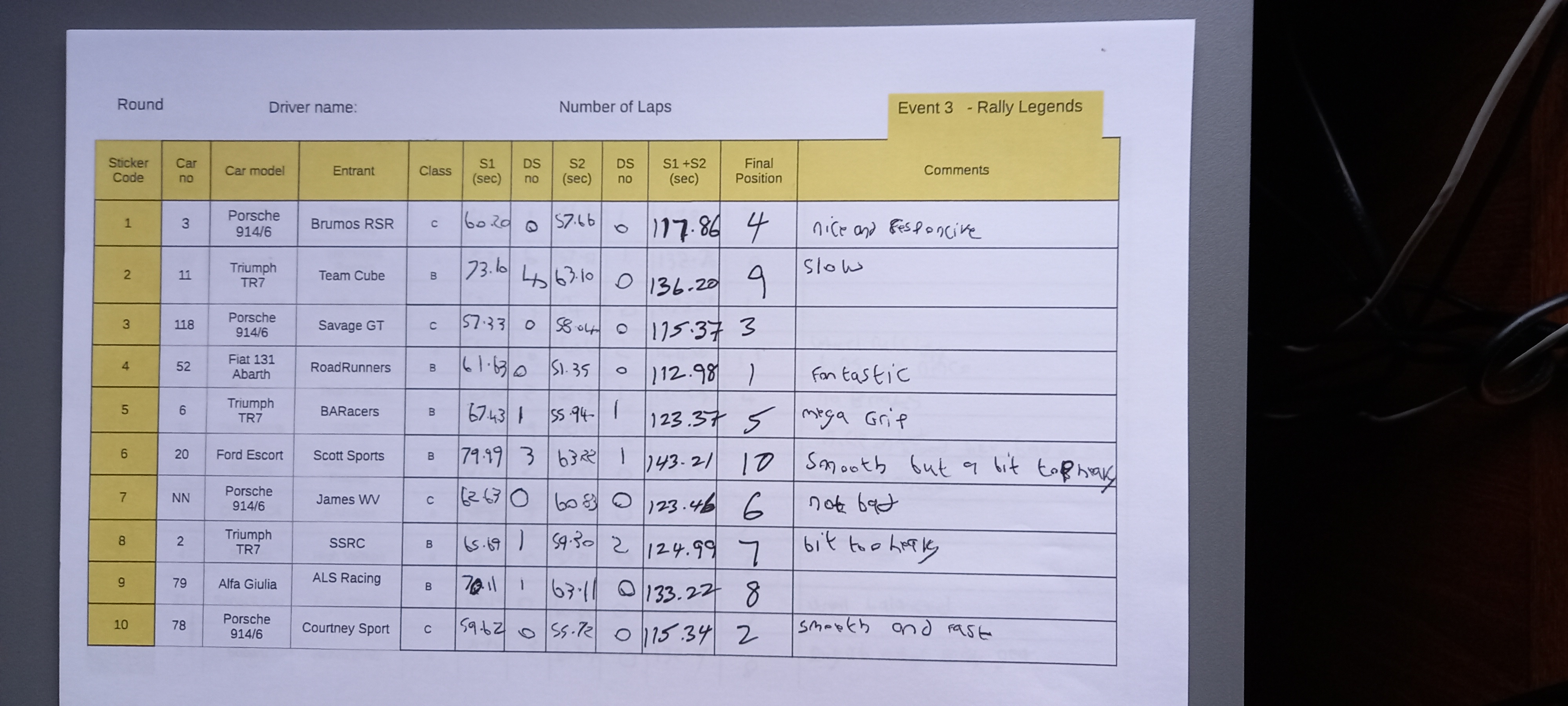 Unfortunately the Rally B Cars Podium did not represent the results and the cars have now been dispatched to the next host.