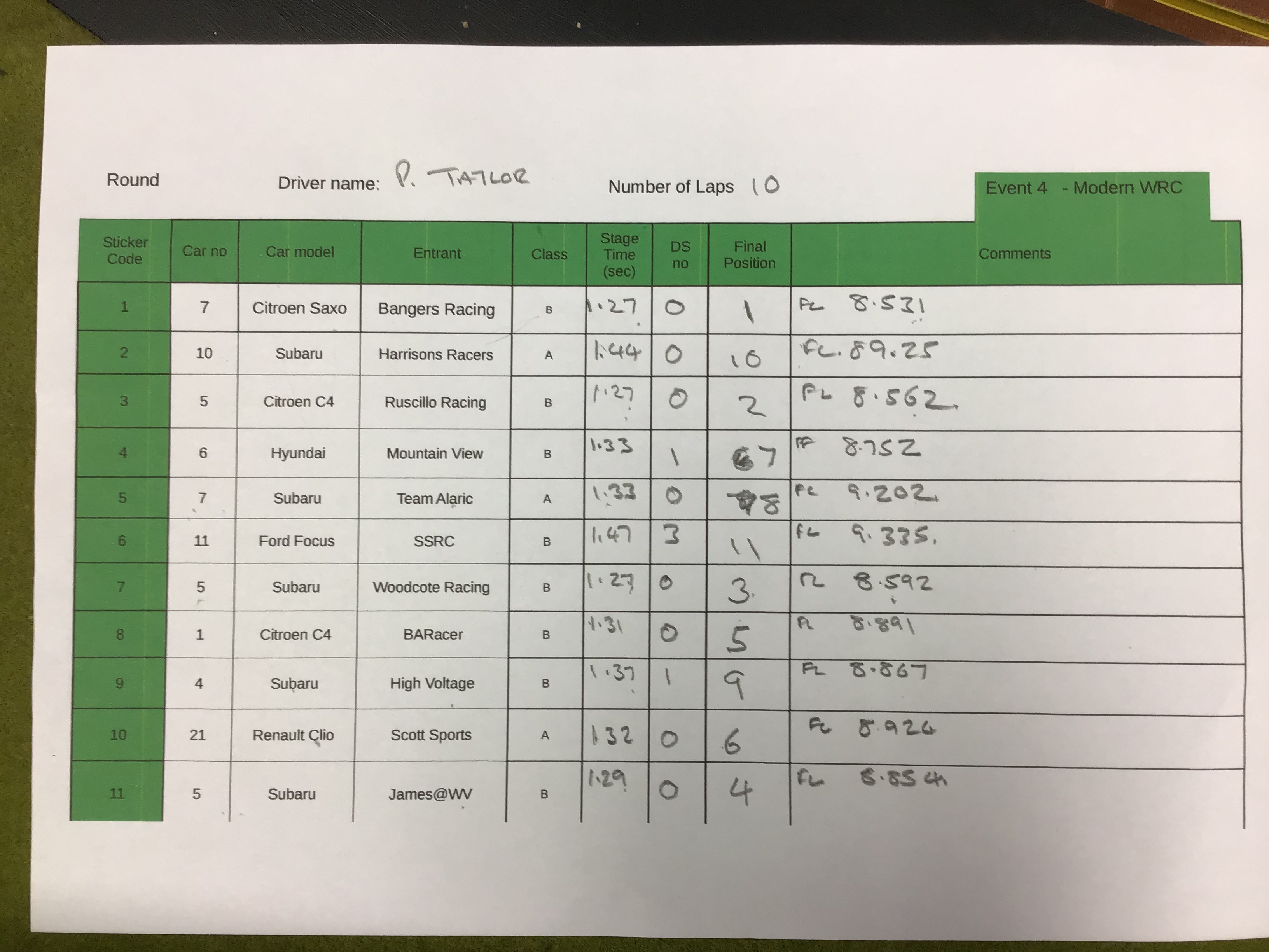Another very close Round for the Modern Rally cars. Ruscillo Racing's Citroen C4 getting back on top but very close behind was the Citroen Saxo of Bangers racing and to complete the trio of Citroen's was a surprise appearance of the Citroen C4 of BARacer. However this means that Ruscillo Racing are back leading the Event series with Bangers Racing just getting ahead of Woodcote Racing's Subaru.