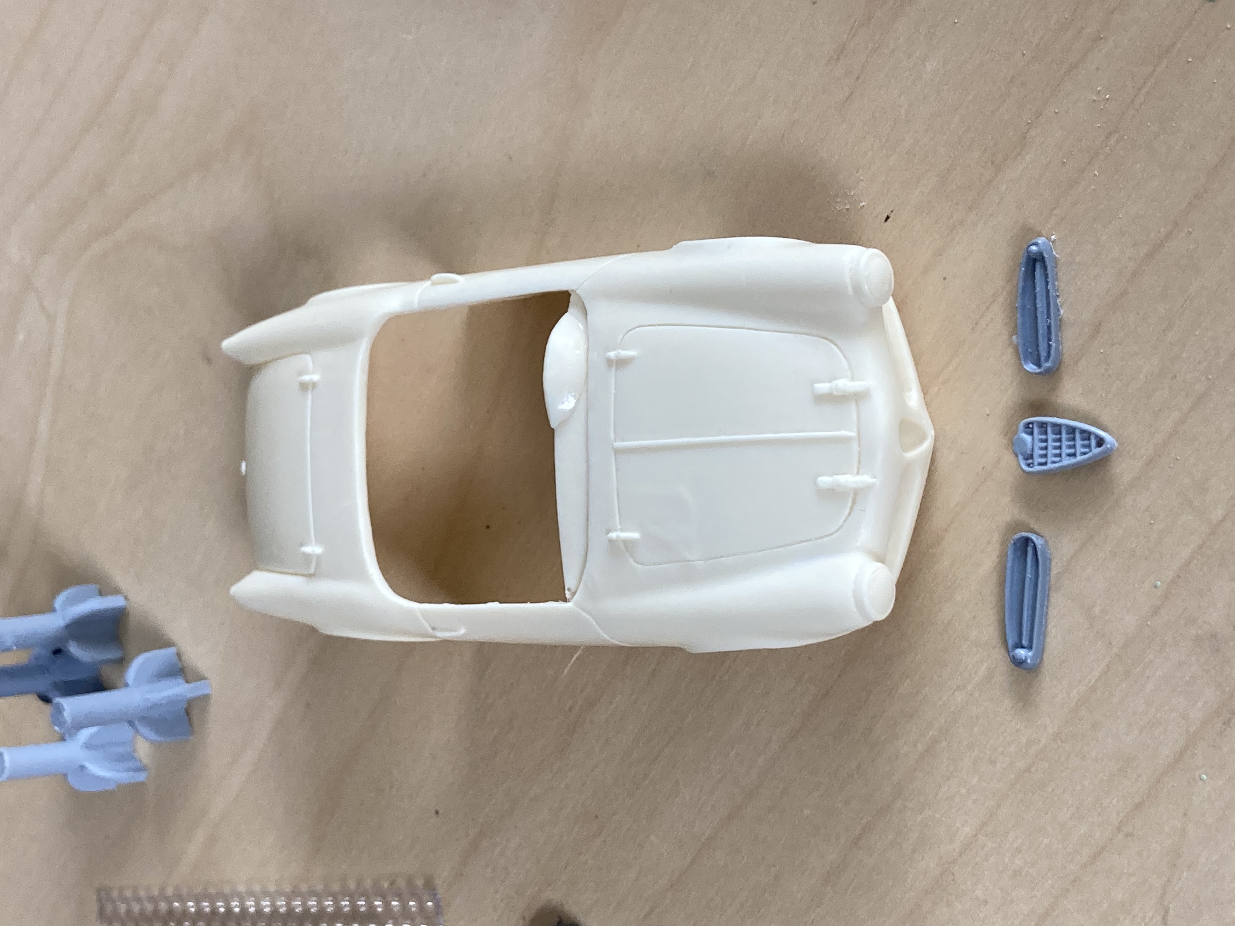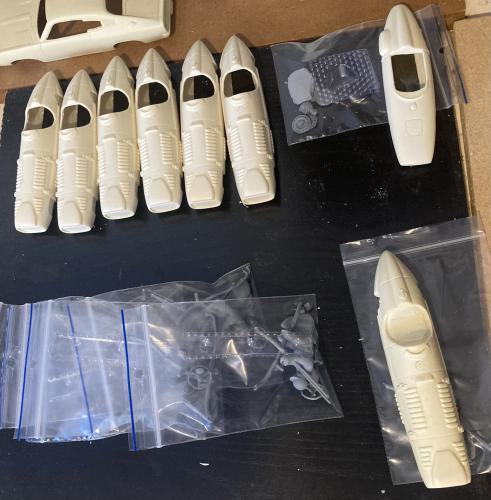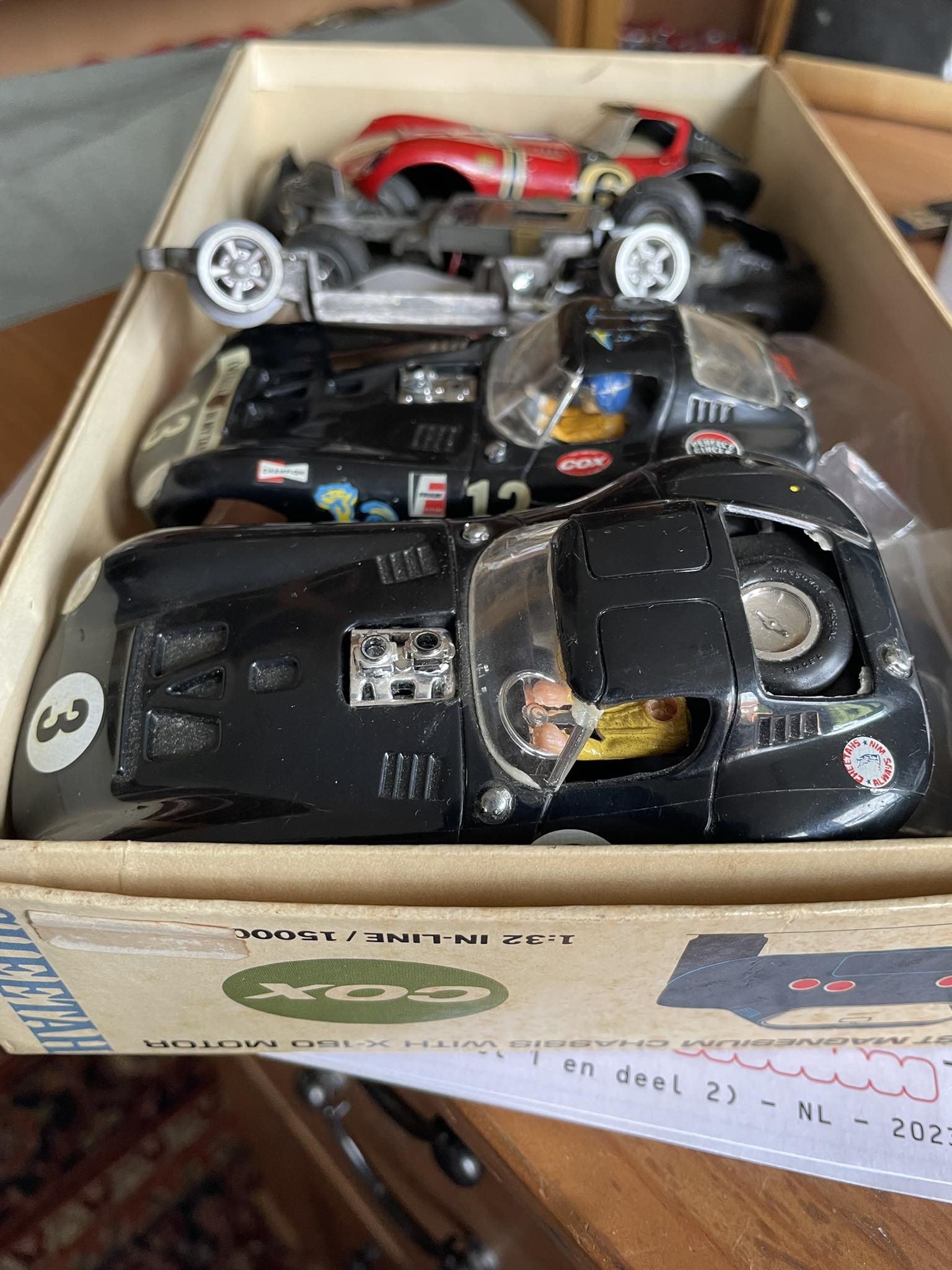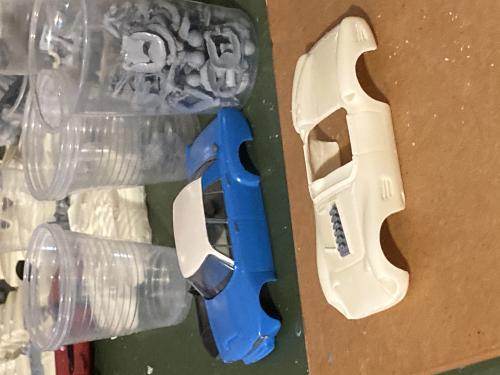 Time to work on these. I have 3 complete cars and the red Cox replica - no idea who made it - It is plastic with white metal parts with headlight openings which means it is not a Bauer kit. Allso not MRRC..... using a Carrera chassis on this but need tyres for the lovely Carrera wheels - but object to pay 7 euros plus 17 euros postage, as I can only find them at one dealer in Germany (at the moment - still looking)