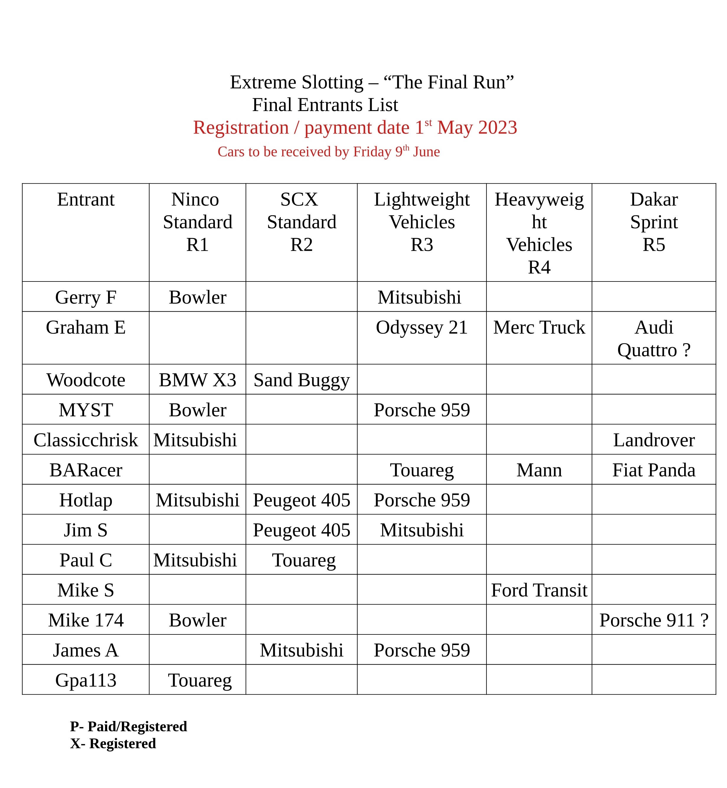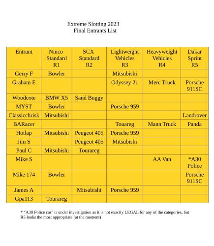 Here is the final list of entrants and vehicles.