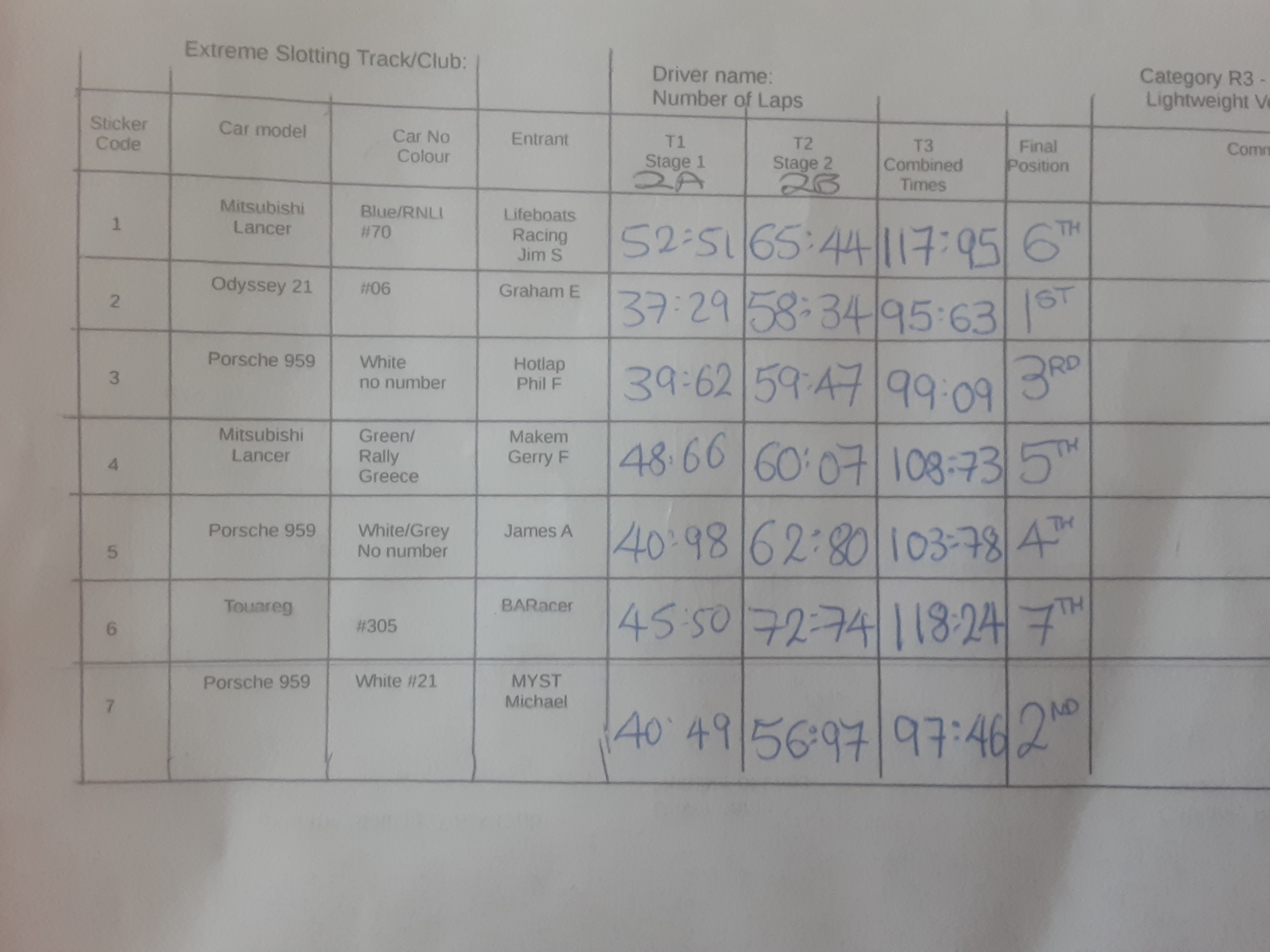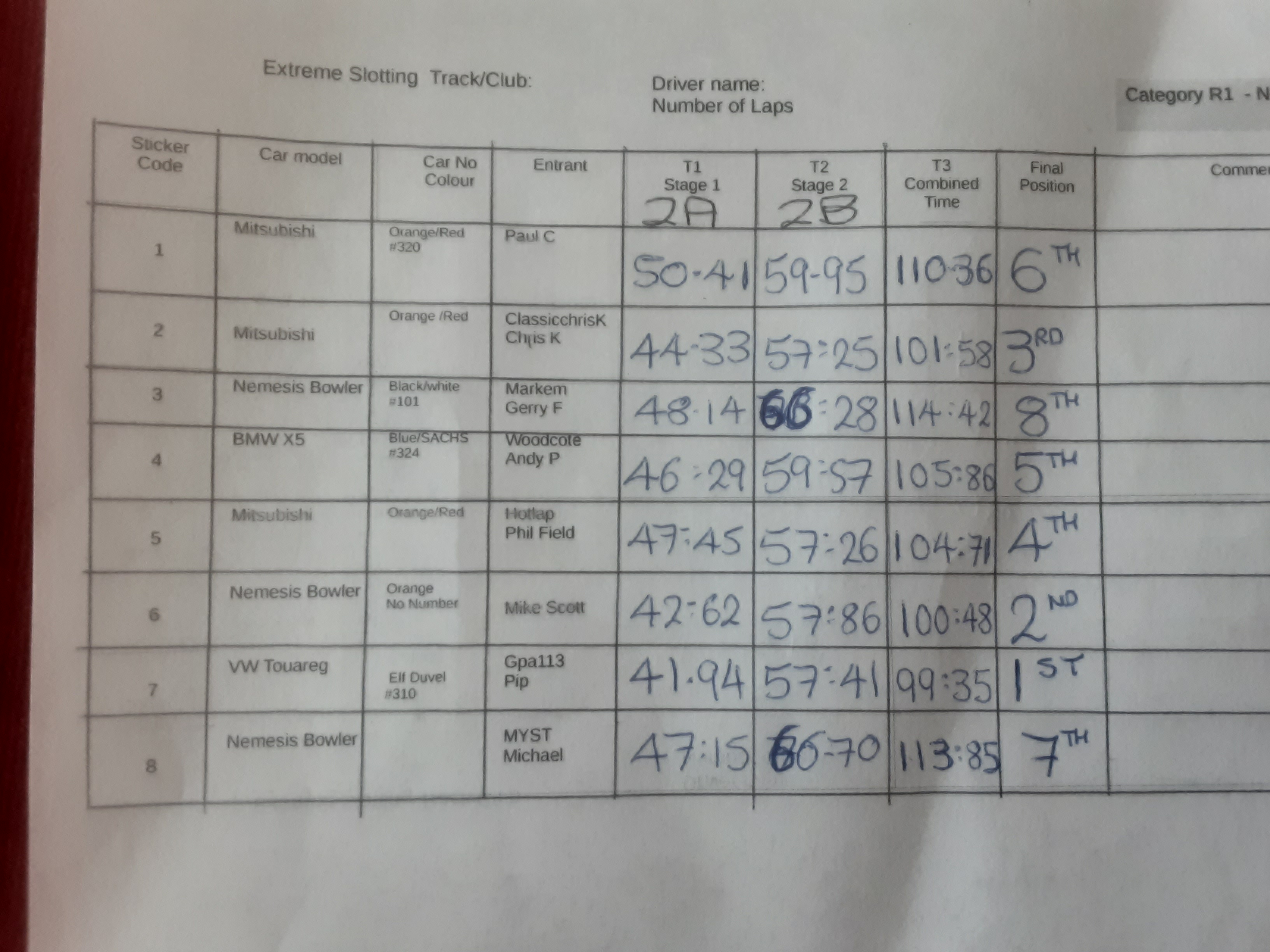 5th was the Andy's BMW, with Paul's Mitsubishi right behind. The Bowler of MYST 7th, and Gerry's Bowler 8th. Gerry, your Bowler has significantly bigger tyres than all other Ninco entries, and doesn't feel quite as easy to drive fast. Just an observation.