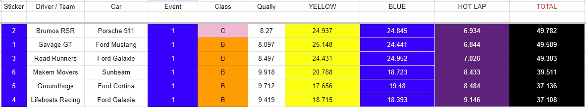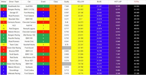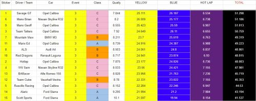 Just a quick question Re: running order. Is the qualifying running order to be used regardless of which event the cars are in? I.e. looking down the list, would we have Savage GT's Event 1 Mustang running alongside WVSAM's Event 3 Skyline? And is this running order to be kept for the whole season or would you want it to change dependant on the current standings?
