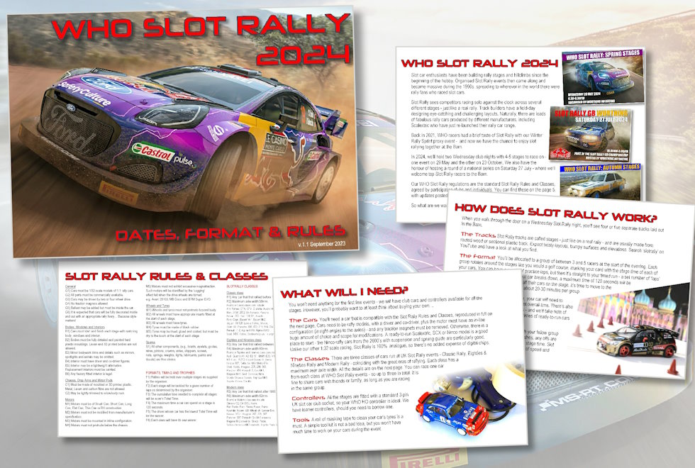 It includes an introduction to slot rally, our 2024 dates, the format, what you'll need and the full Slot Rally Rules & Classes information.