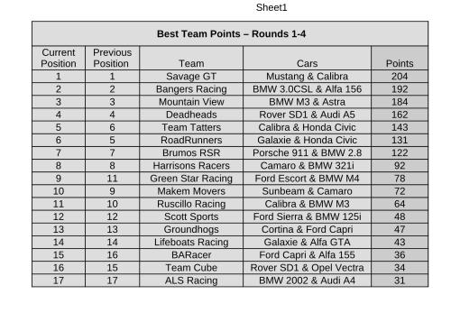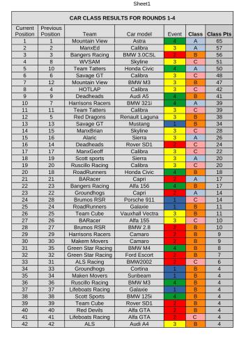 Mountain Views Astra quietly extended it's lead over the Calibra of ManxEd. A unexpected better run for Team Tatters Honda has pushed it into 3rd place.