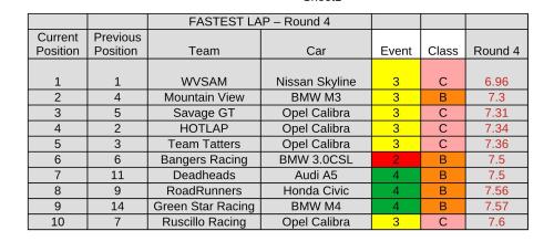 Bangers Racing BMW keeps the lead but Mountain View's BMW back into 2nd place with a great run on this Round. Deadheads A5 remaining in 3rd place.