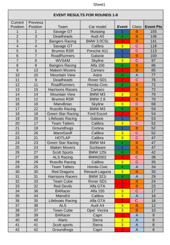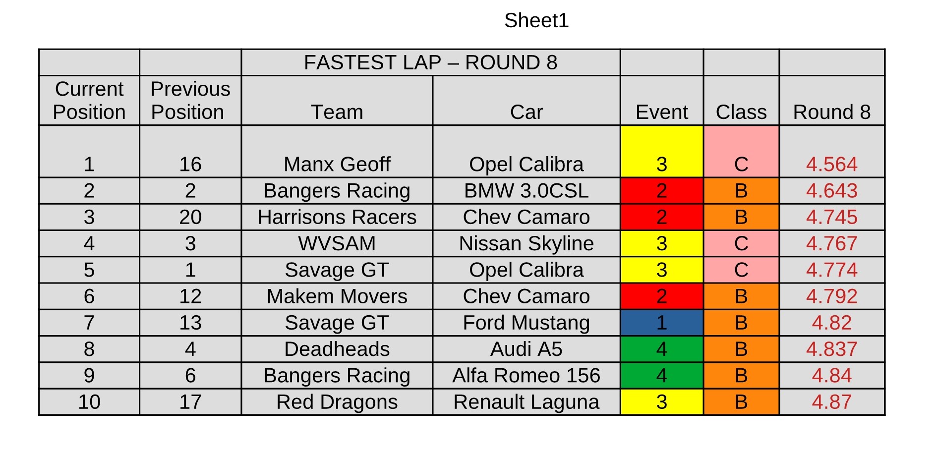 So what an interesting set of results, a chance for cars further down the field to shine, great to see some new Podium cars. Makem Movers in 1st place  Sun, the Manx Bros on the Podium and even Scott Sports making a rare visit to the Podium. Perhaps we should do more Rounds at Woodland Fort  Tease