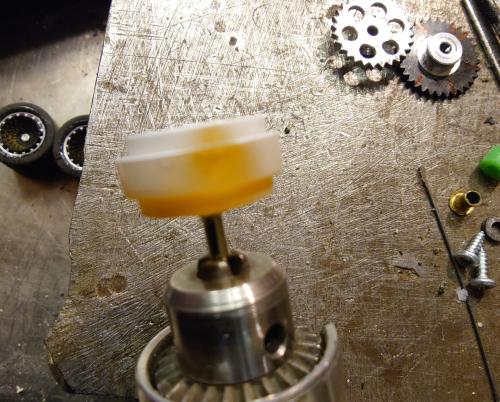- Push a wheel onto the knurled axle as square as you can so it runs true...it'll hold well enough