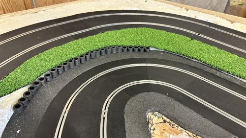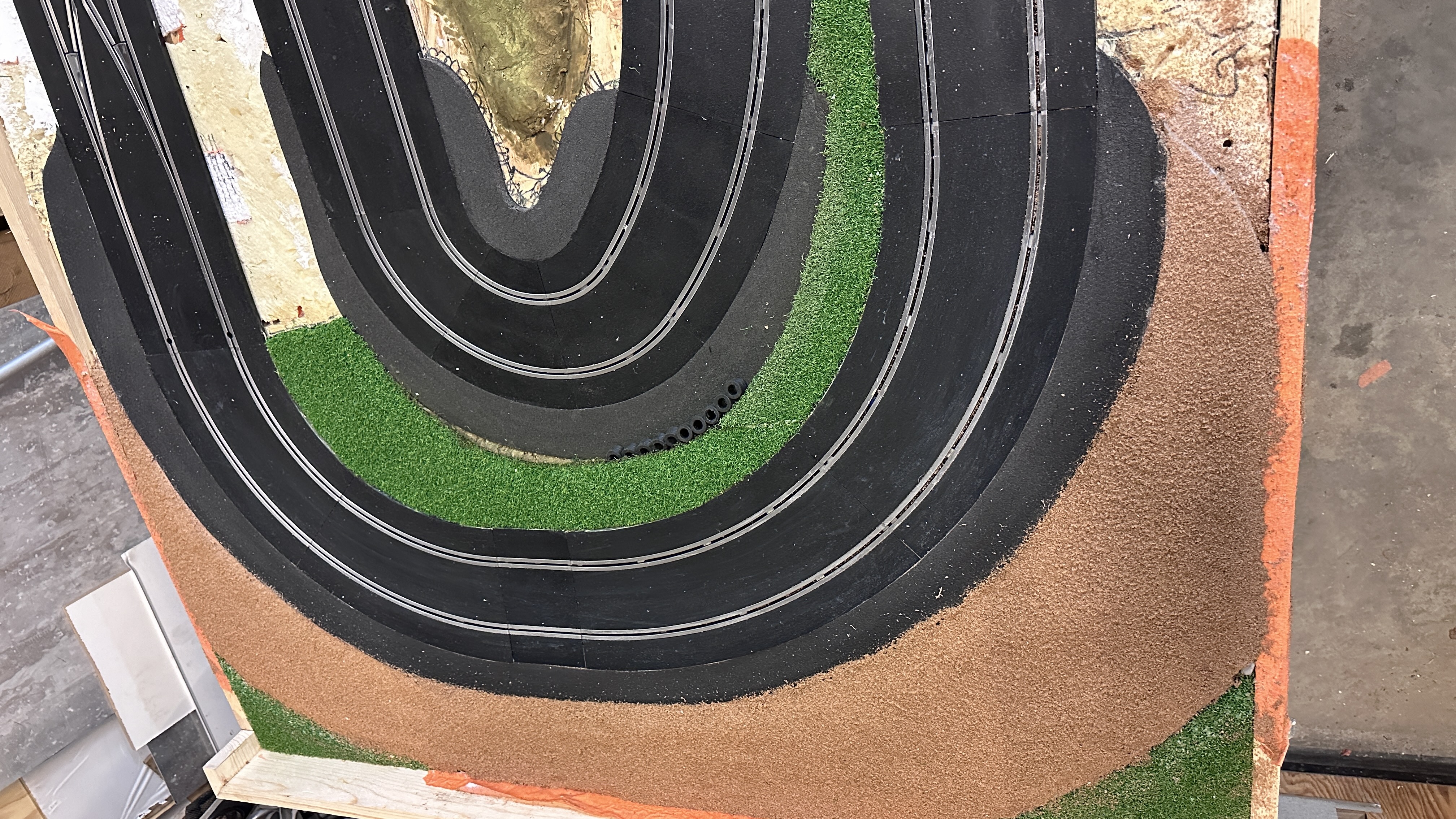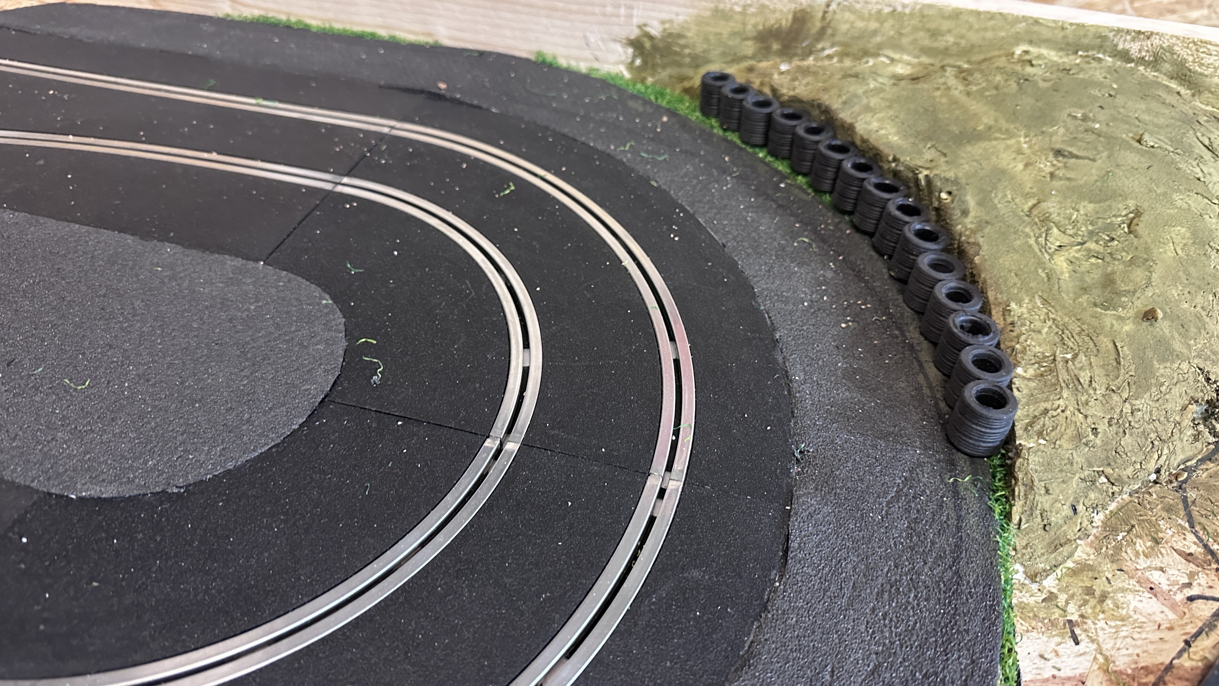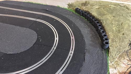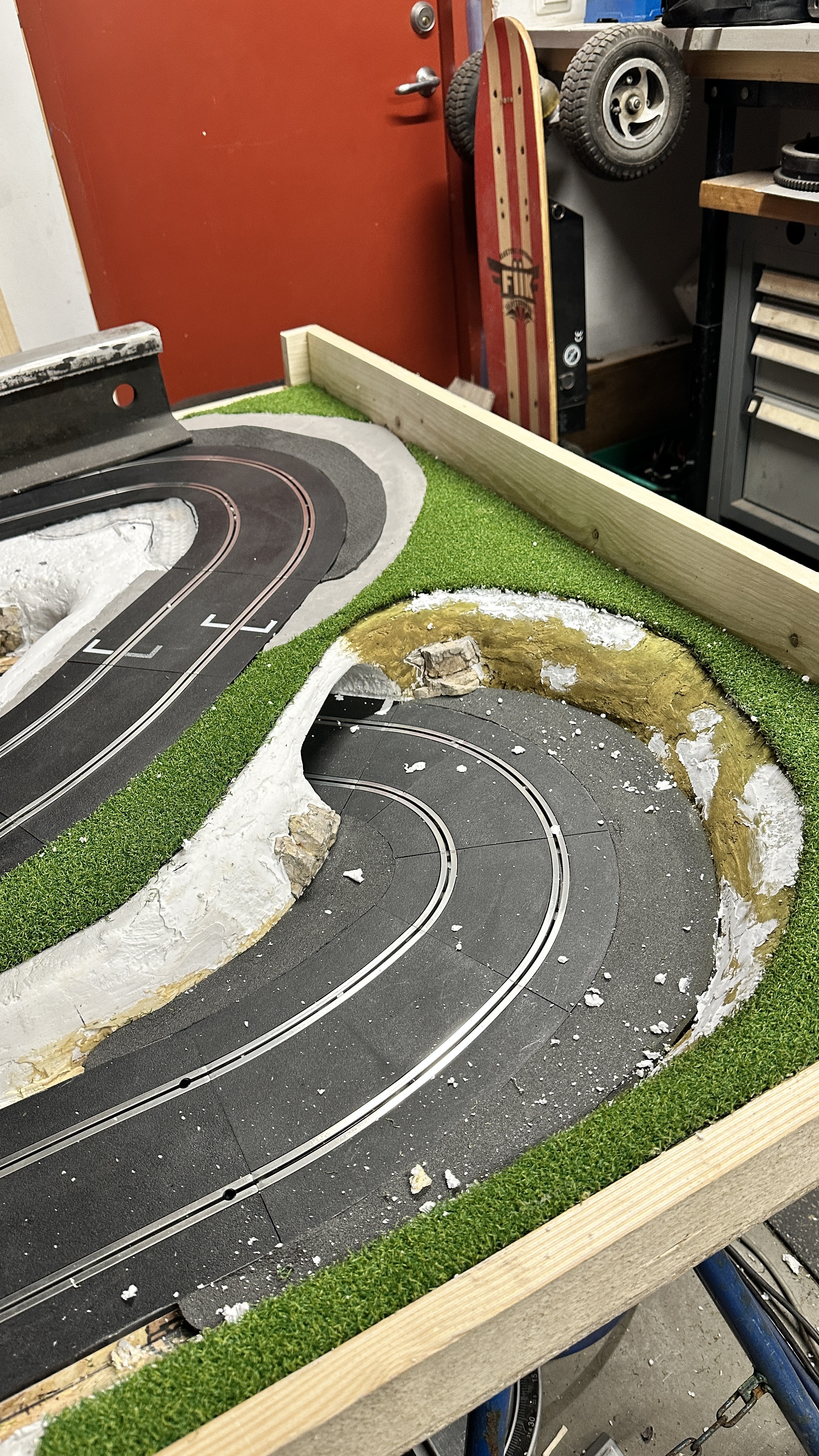 Waiting for track fixing clips from PendleSlot that’s been out of stock for a while now. But they managed to dig out one remaining pack which is now in the mail. Hence the middle section isn’t progressing as much as the two end sections. The overpass side is now 95% done. The opposite side has gotten a huge gravel trap now that is currently drying up. Cork granulated sprayed excessively with wooden glue solved in water - will take a couple of days to dry up. Fingers crossed. Got this excellent tip from @swedenslotcars on Instagram on how to attach standard Scalextric fencing in whatever way you want. I’ll share details in the next post here :)