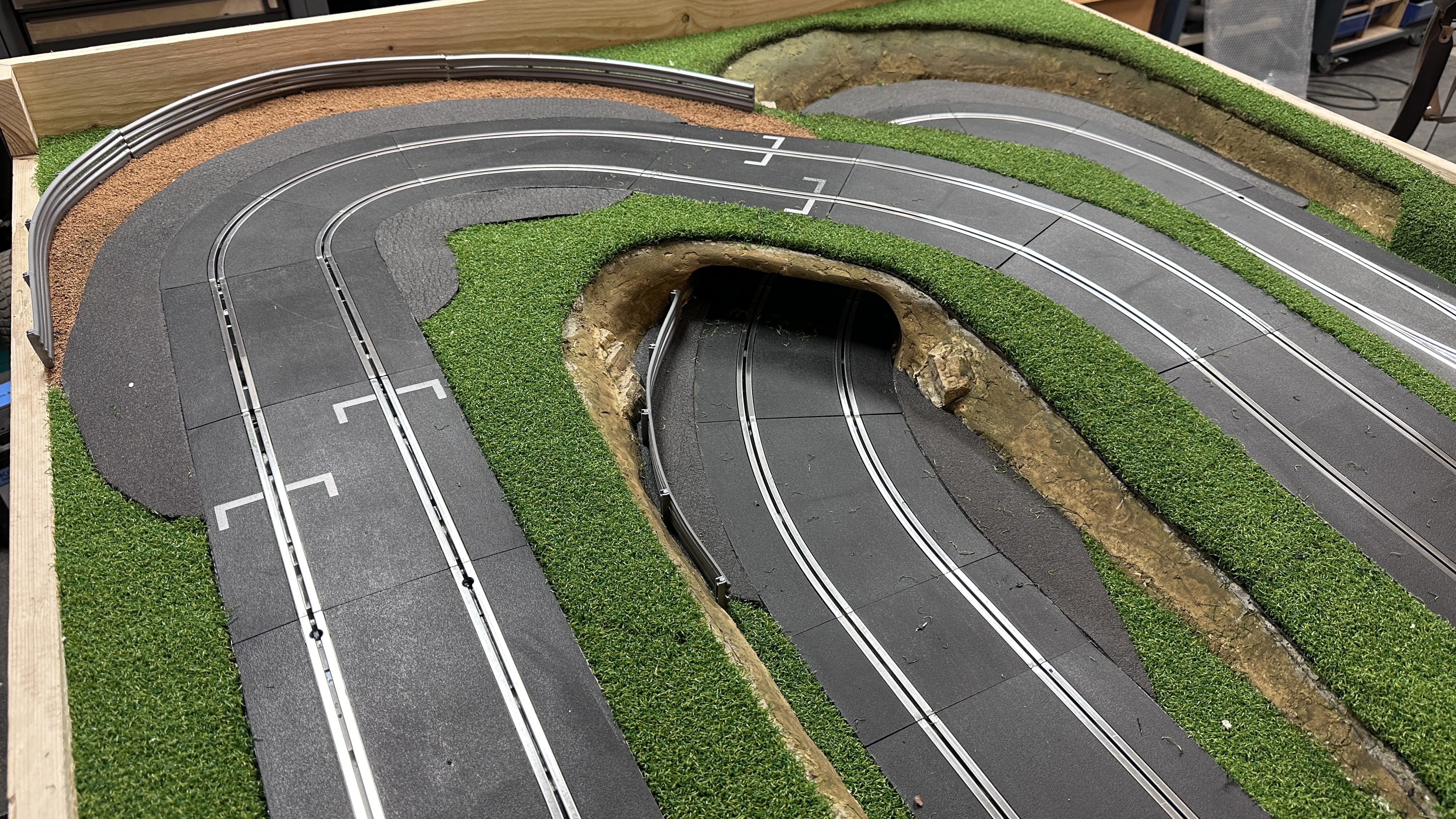 If cars are going Into the tunnel in your last two pics, it looks like they'll clip the corner of the wall or rock if they're going too fast - 1:32 cars. 1:24 cars will most definitely hit.