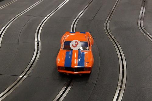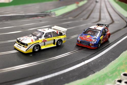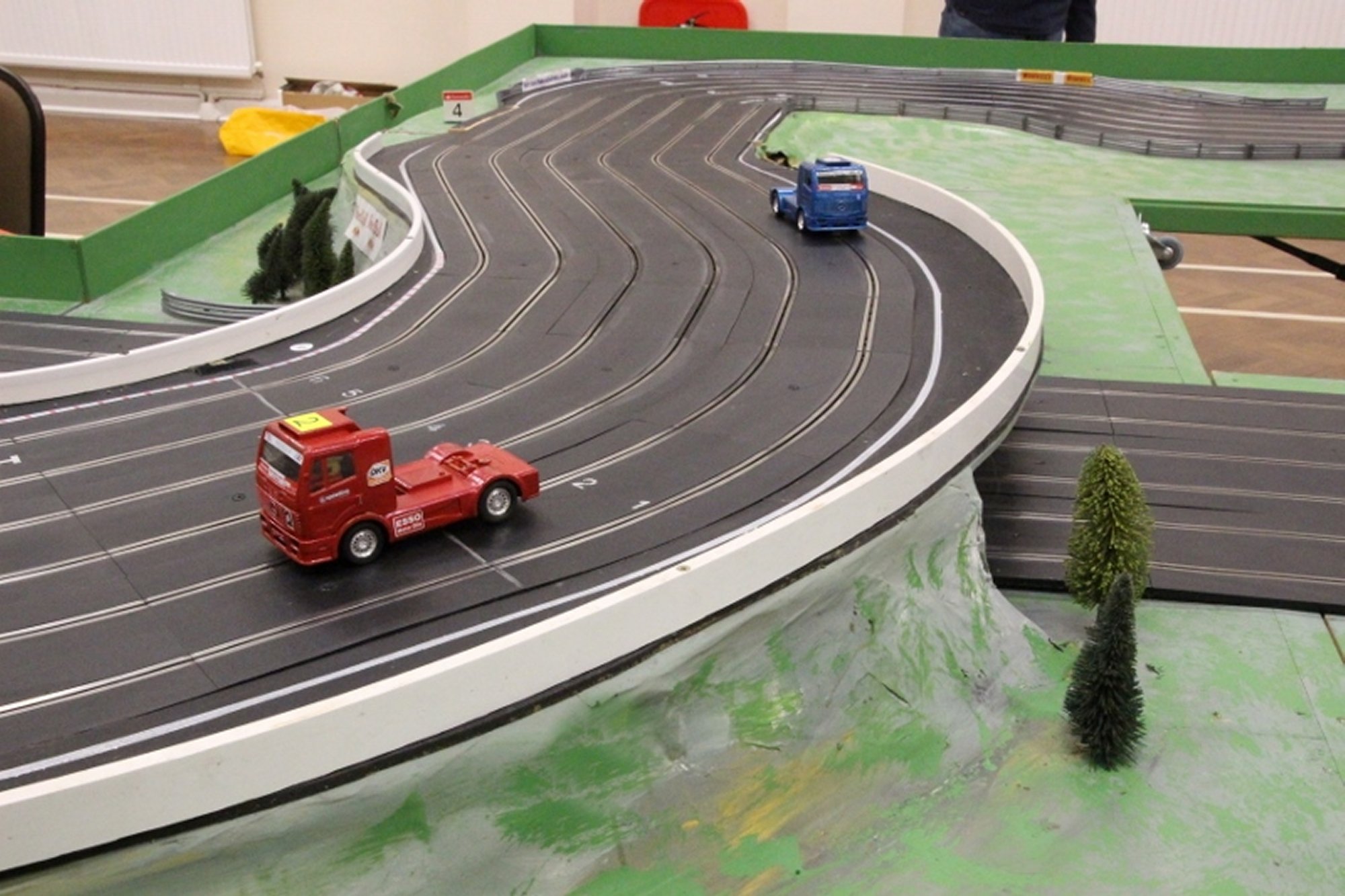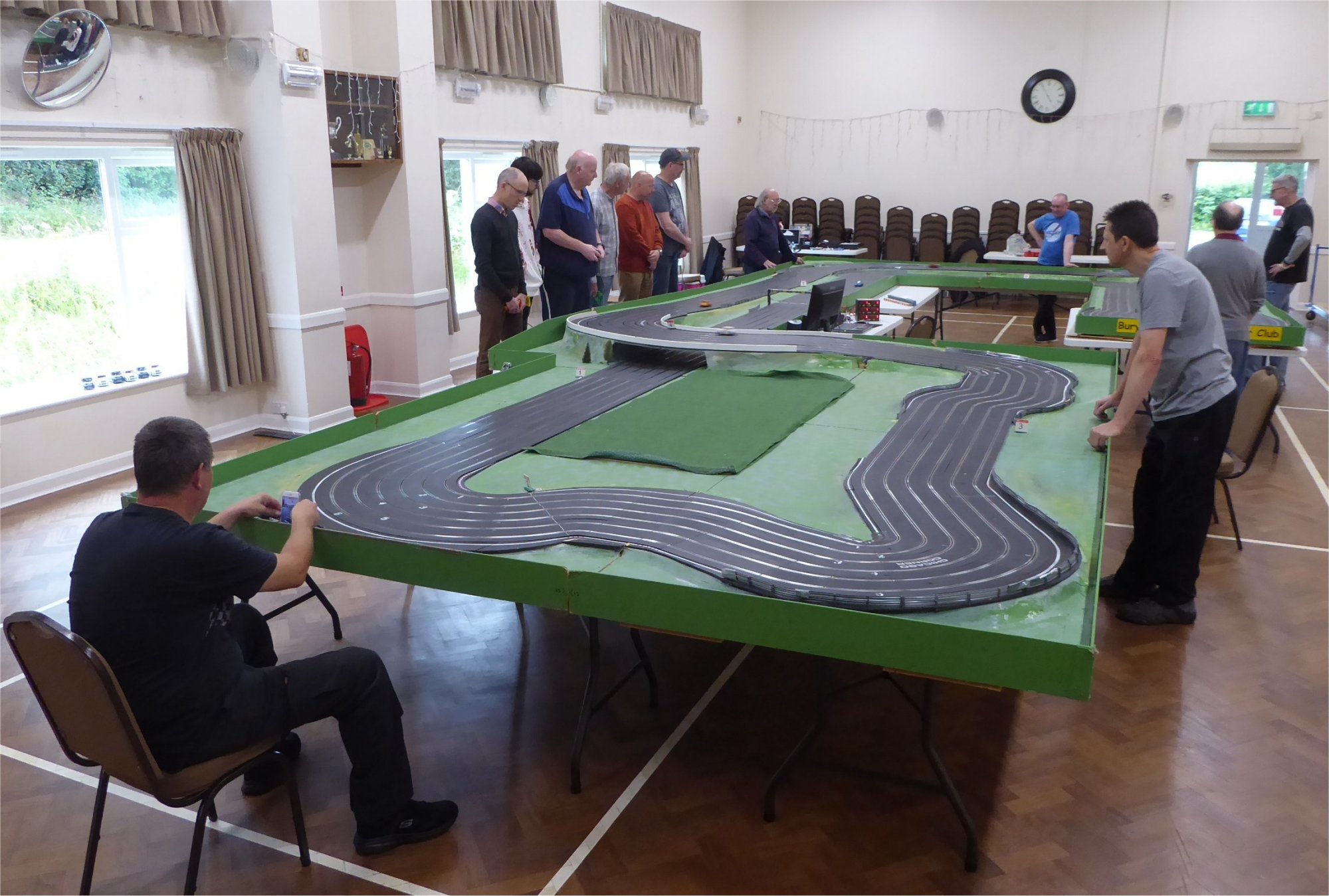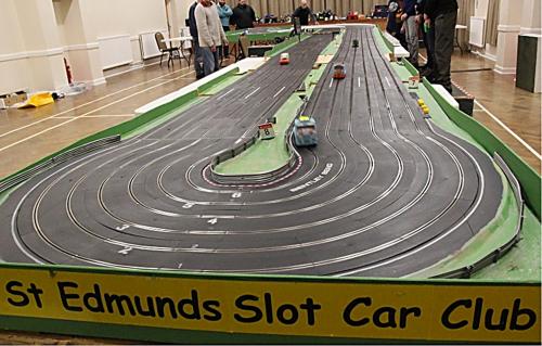 Yet another layout was quickly constructed from the modular units, with some donated track sections being pressed into use to extend the main straight even further. This caused a few connectivity problems, which were soon sorted out but it did lead to much higher speeds and a few more 'racing incidents' at the mid-point and exit on those l-o-n-g straights!