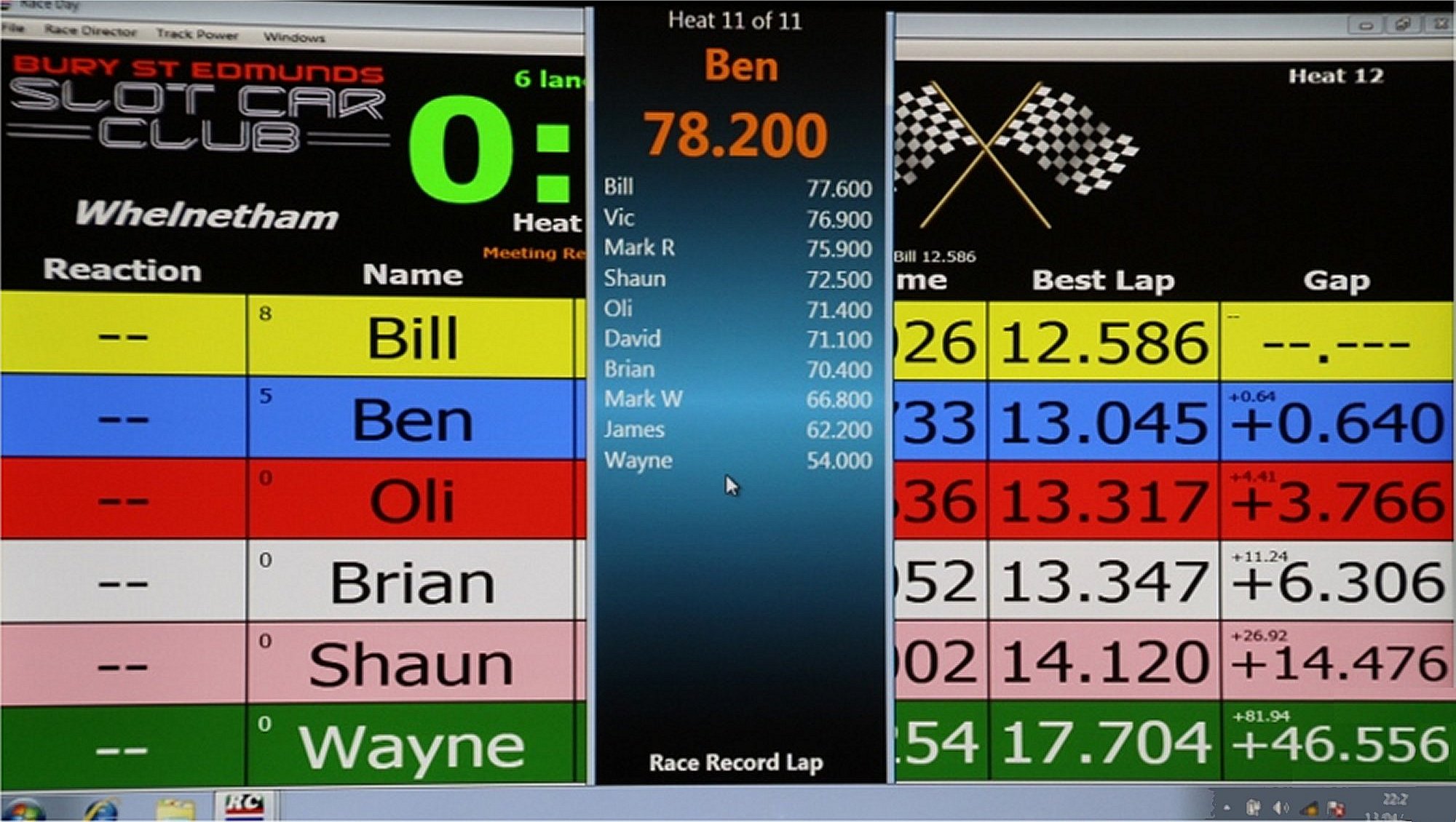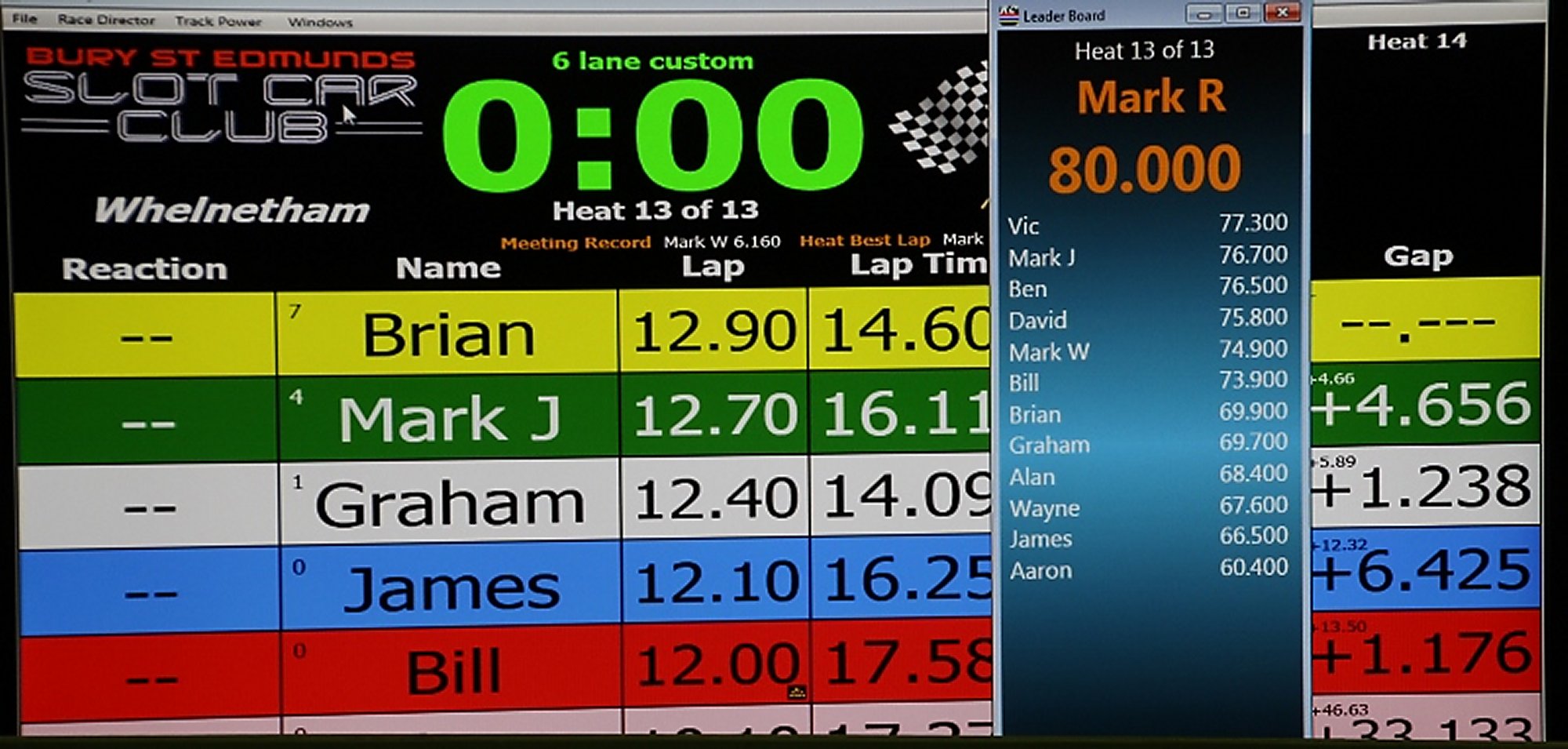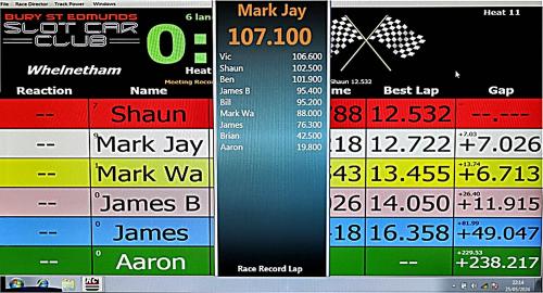 Mark R weathered the carnage best, coming home first a good two laps clear of second place man Vic. Bracketing Vic's second place was another Mark, Mark J, who was barely half a lap back in third. (Remarkably FOUR Mark's raced on the night, the Race Coordinator audio having since been augmented to identify WHICH of the four was doing what in a particular heat!)