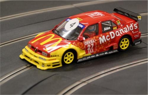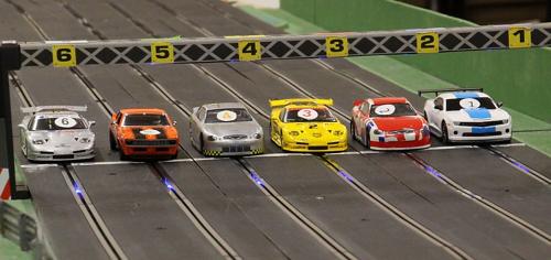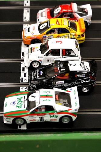 With a couple of drop-outs - and three new competitors added - very close and fast racing ensued in most heats with, as usual, many different 1/32 and 1/1 makes of cars being represented. As per the support race, staying clear of the many incidents was the way to go for a quick lap with Vic coming home in 1st place, less than a lap ahead of rising star, Ben. This time Mark J took precedence over Mark R, stepping up to third place one and a half laps ahead of his namesake.