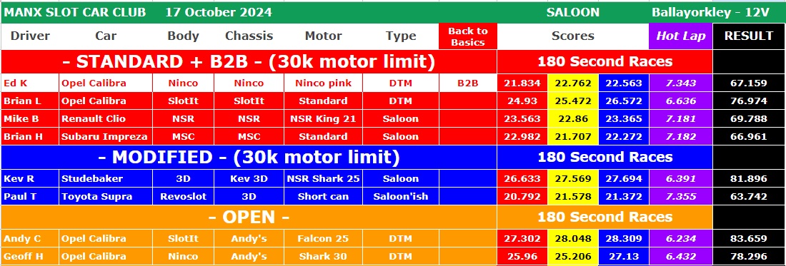 Race results and report - 17th October 2024 - Club Revoslots followed by Saloons