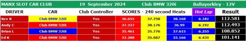 Heat #4 was the other close race with Andy in Yellow lane and Brian in Blue lane, both drivers managing to get round in the 6.2 second bracket, Andy slowly pulling away in his favourite lane with Brian finishing half a lap down at the end and both drivers getting their best lane results in this heat.