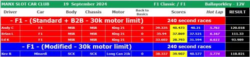 Race results and report - 19th September 2024 - Club BMW 320i Group 5 followed by F1
