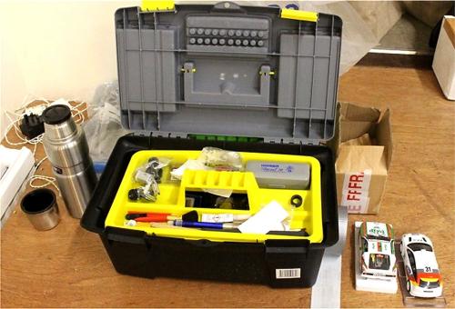 Ten racers turned up to assemble the track on race night but for some reason they were feeling a bit camera shy, so rather than focusing on the track action, drivers and marshals we've gone for their pit boxes instead.