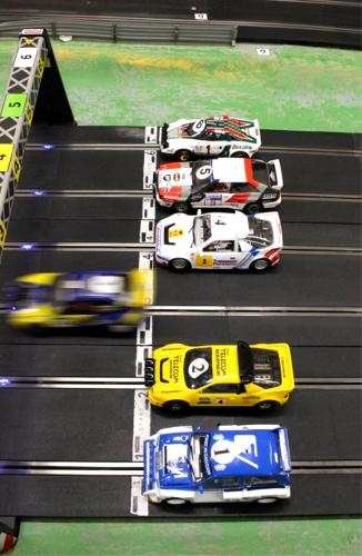 Support race: Club Scalextric Porsche 911GT3's, all rebuilt with new tyres, braids and added lead. What could possibly go wrong?