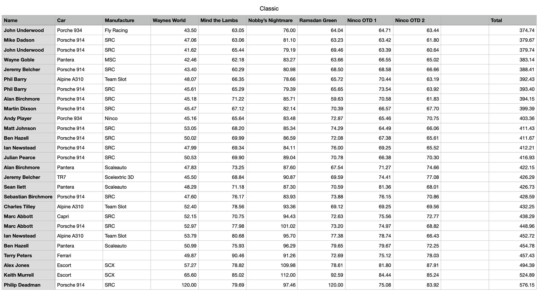 I'm as guilty as many others for running an SRC Porsche 914 in the Classic class, as it takes great preparation and driving skill to get any other car up at the top of the ranking. Pleased with the 'non-914' placing for my TR7, but chapeau to Woodcote with his Ninco entry!