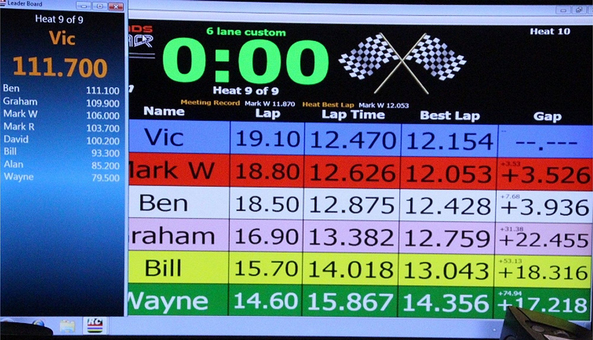 The final heat screen (shown below), which also gives overall positions, shows how closely matched the cars were, with five of the six drivers best lap times being covered by half second.