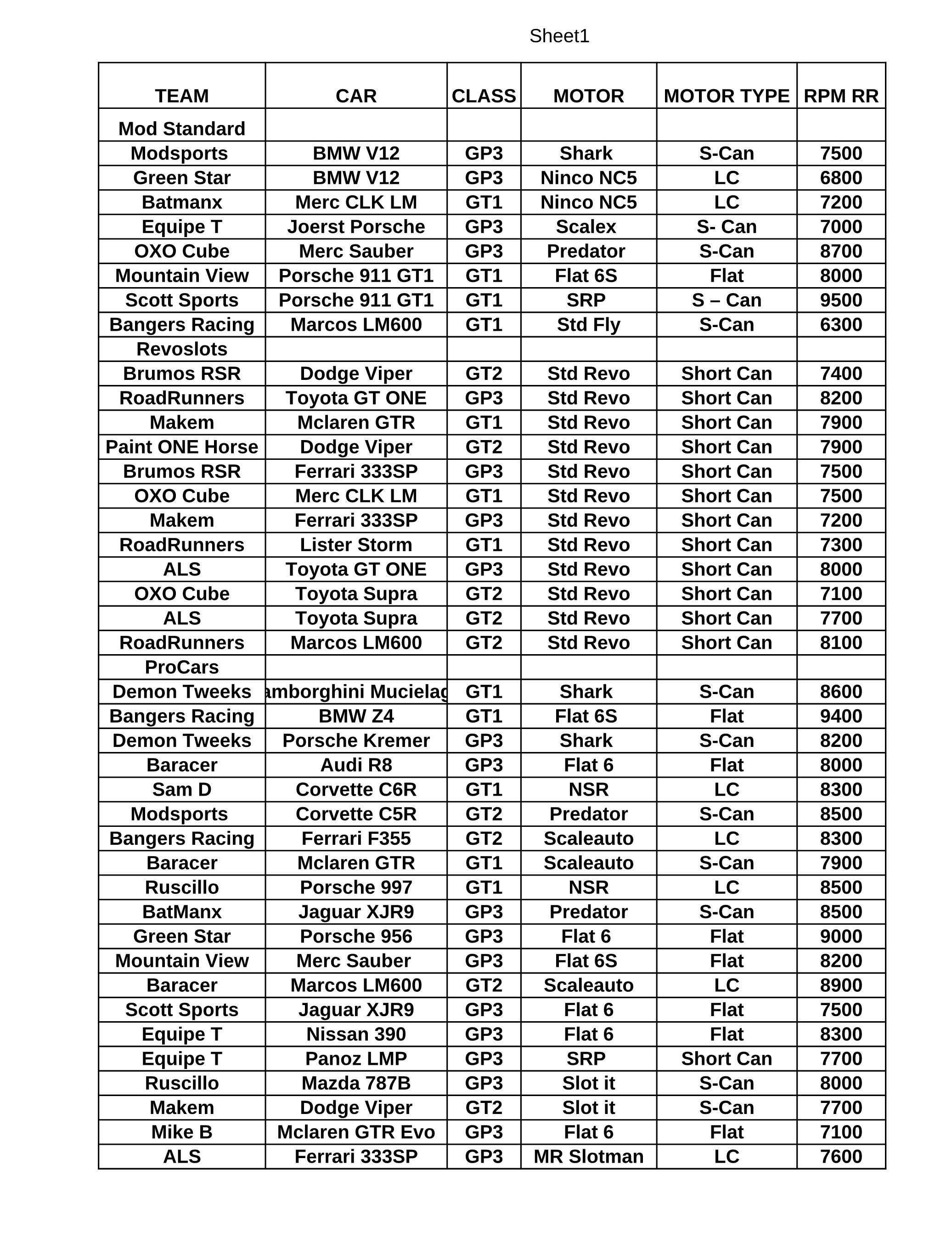 I have recorded the rpm of the cars on my rolling road just for interest sake, and again very little difference between the cars in each group.