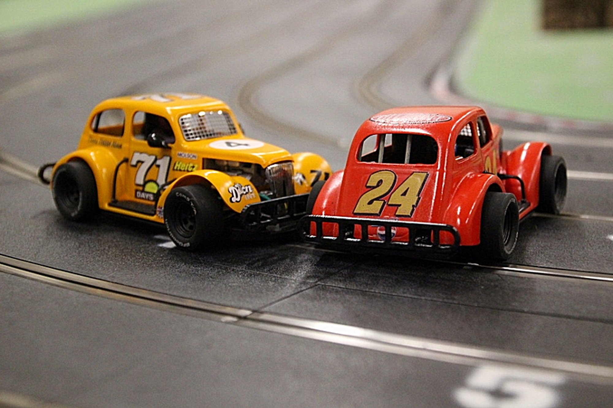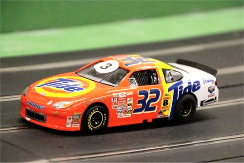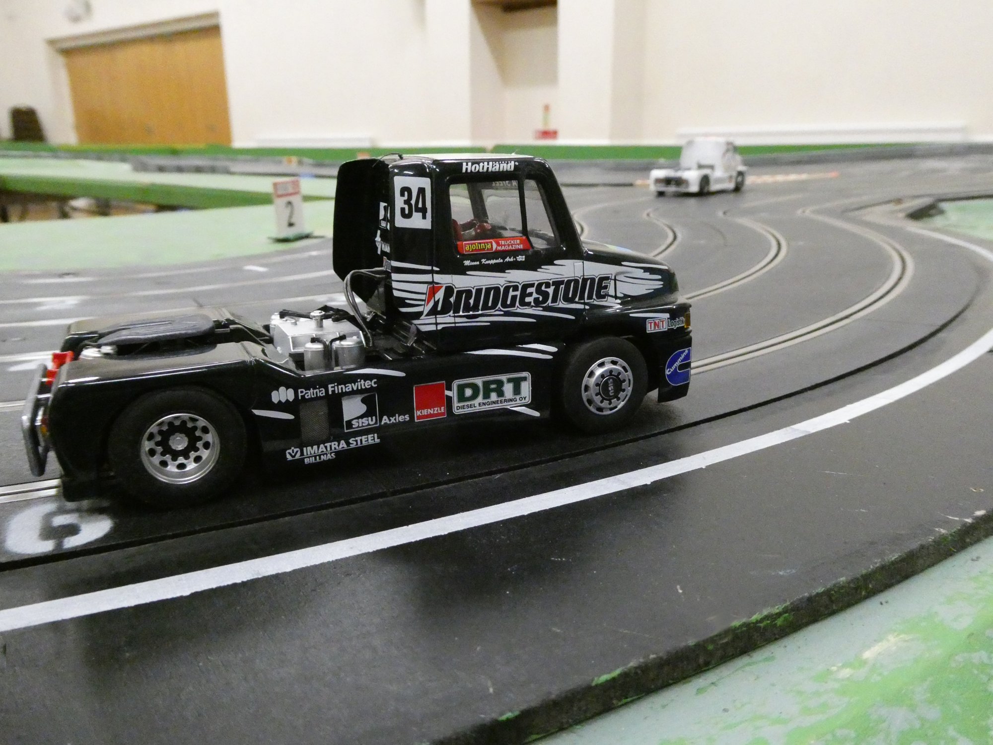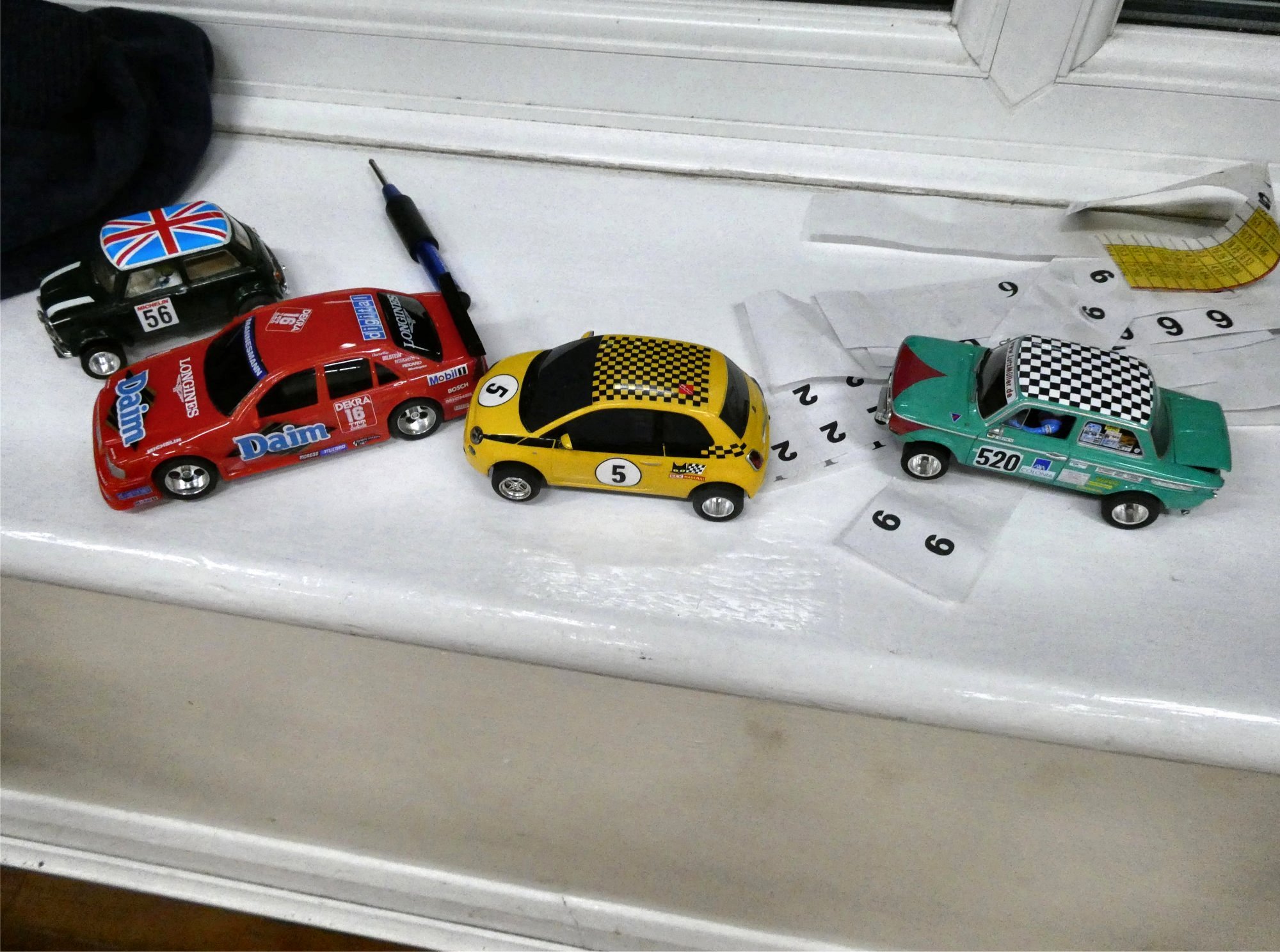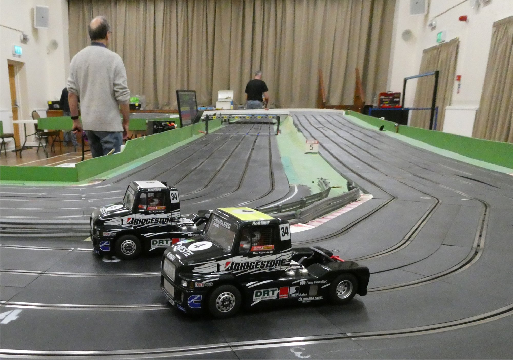With equal cars it was down to the car set up and smooth driving from the eight drivers. Close racing ensued with many side by side battles, Vic eventually coming home in first place just seven feet ahead of Bill. The screen shot from the last heat shows how close the racing was, Alan taking the win by a fifth of a lap from Ben, with Mark J just over a half a second behind in third spot.