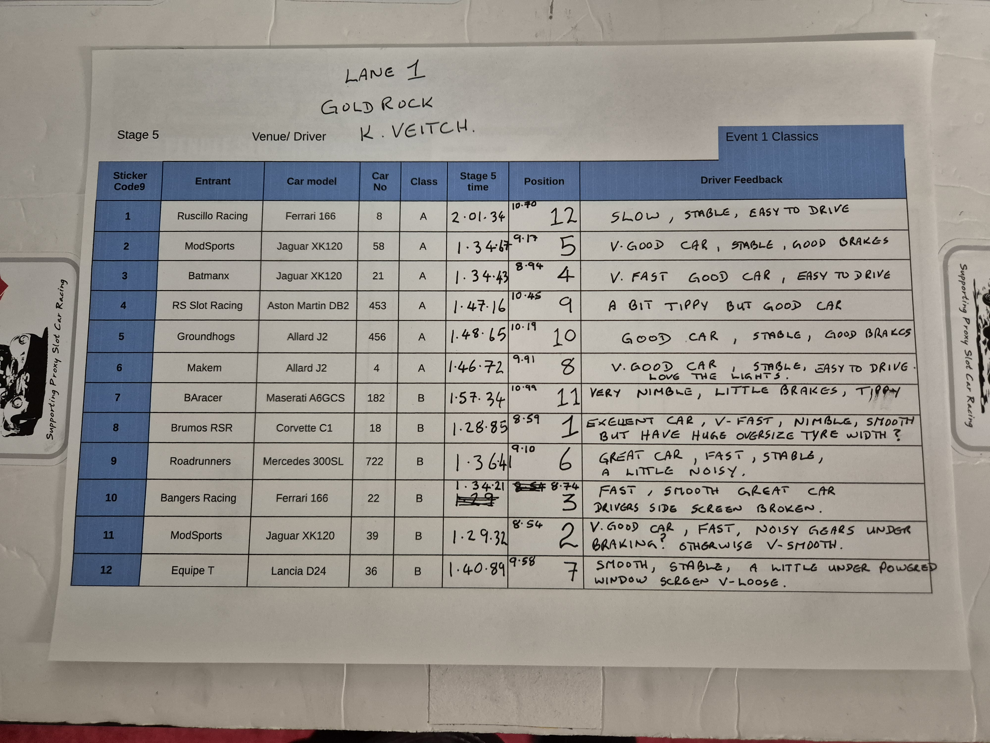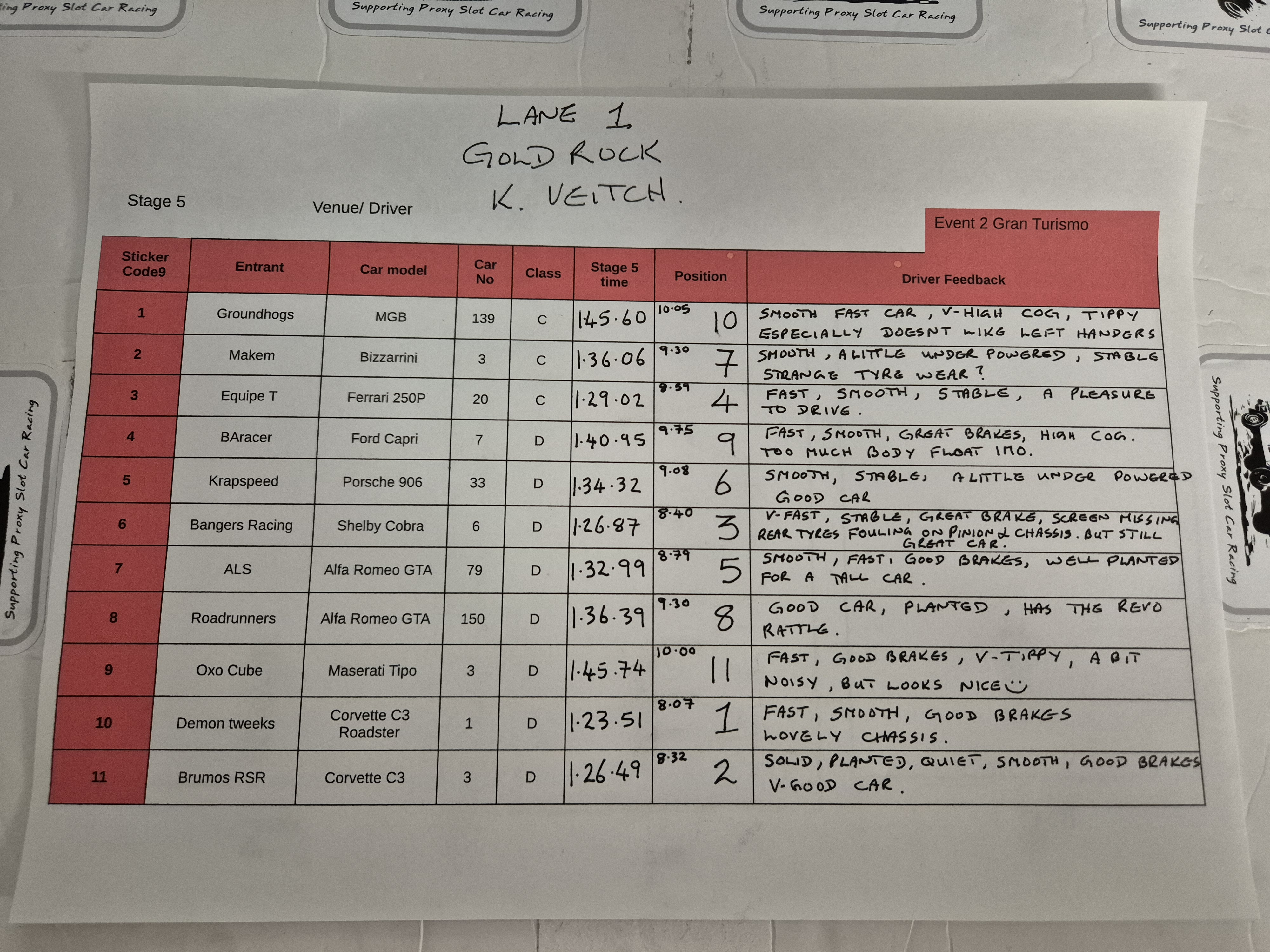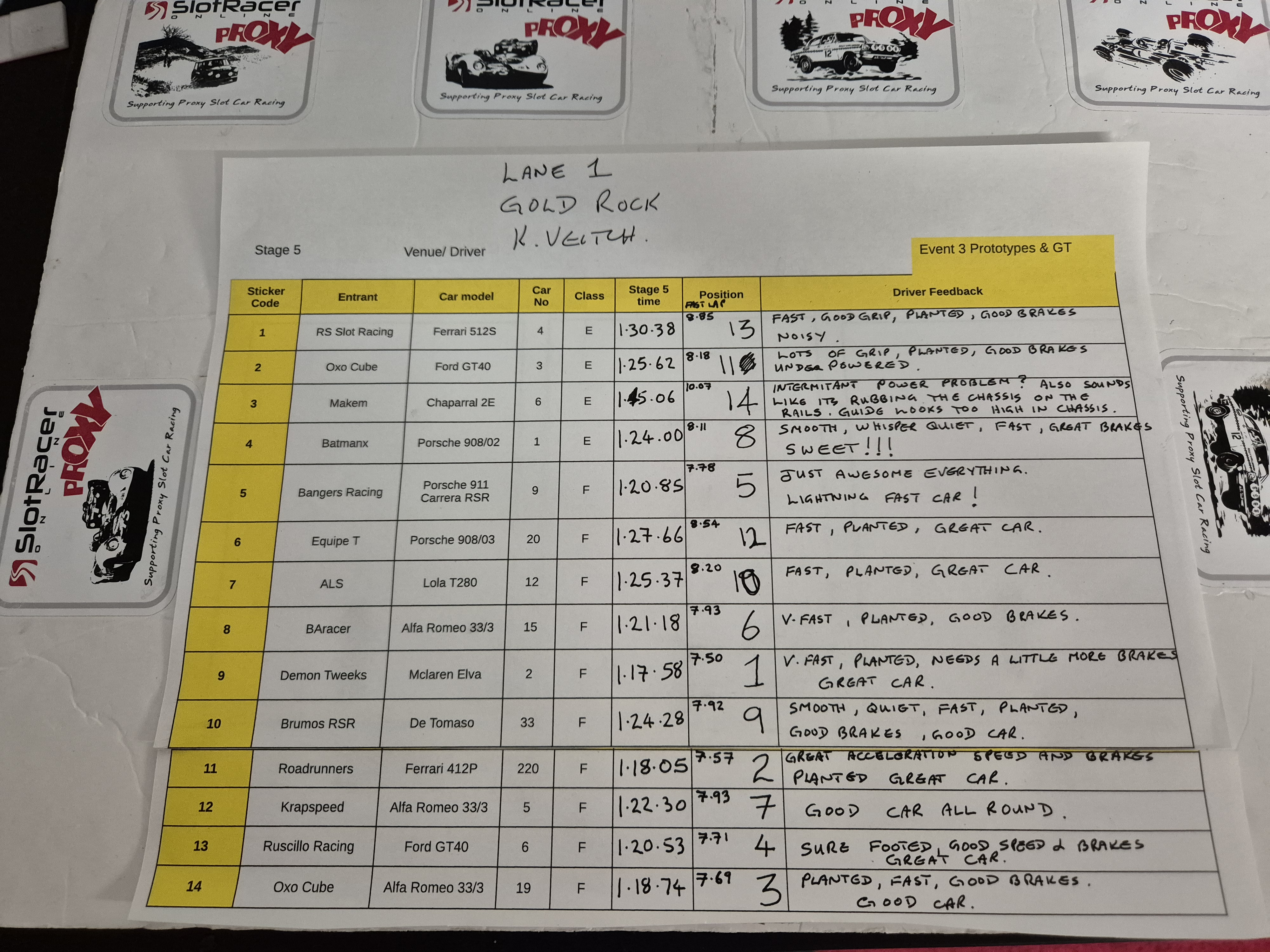and to give you guys a bit of an idea how your cars might fare here at Goldrock at 10v