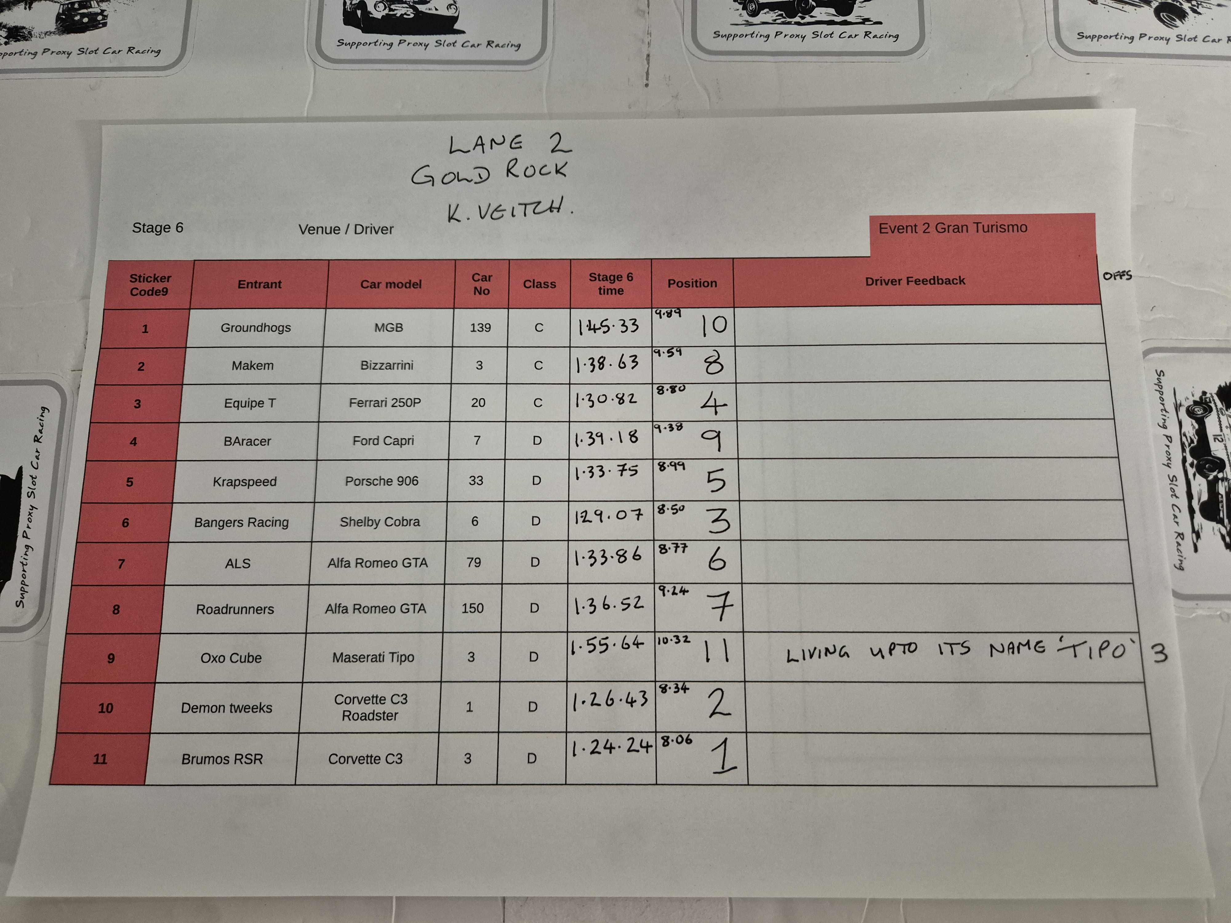 tbh , these results mean nothing , was just a chance for me to check the cars run well , and to familiarise myself with the different characteristics of the classes