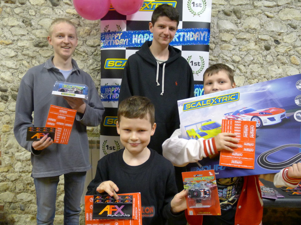 Everyone went home with a birthday present, thanks to Scalextric, AFX, Slot Car Magazine, Gaugemaster, Jadlam Toys & Models and some generous club members...