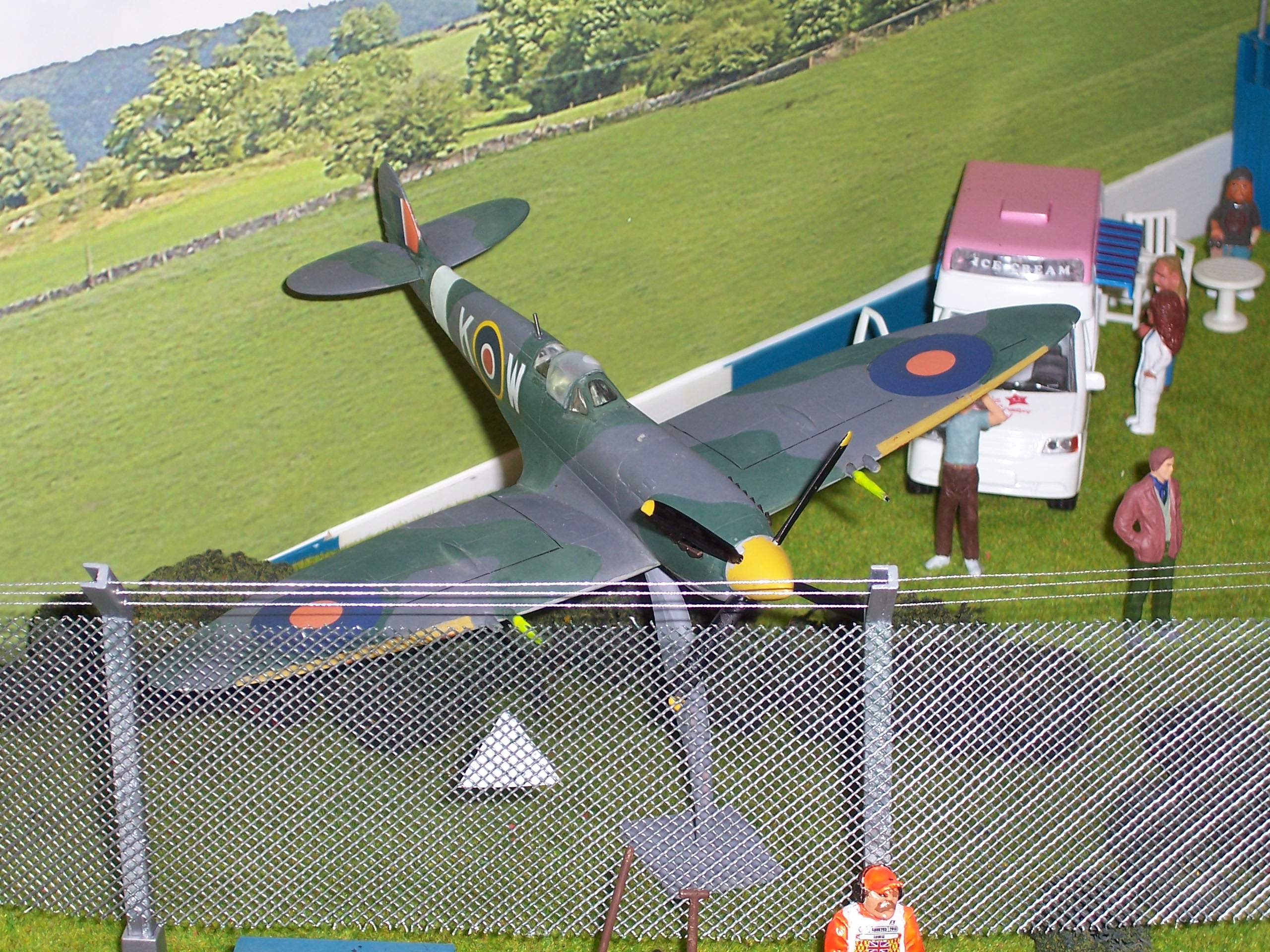 As always with these things the problem of scale had to be addressed. The people and cars might be 1/32 scale but the track definitely isn't and a true scale aeroplane would be way too big and stretch halfway down the straight. 1/32 Spitfires are also exceedingly expensive.
