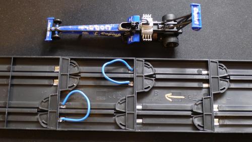 On the strip I am building now, I have already extended the shutdown very slightly and have used an HO track that offers more metal for the traction magnets. I have also shorted out the shutdown after a dead section of 3-inches. It seems to be working okay, but needs a little more testing before I commit to drilling holes for sensors. I want to keep the 82-inch (1/87 scale eighth mile) timed section and be able to run a range of different cars with adequate shutdown. Having said that, I'm expecting to limit voltage to 13.8 volts (14-15 volts is not unusual on US scale 1/8 mile strips) and be looking at the slower end of the HO slot car spectrum - pancake cars with 14-16 ohm armatures and 6+ ohm ceramic magnet inline cars. Because of the track I'm using, all cars will need to be fitted with braids.