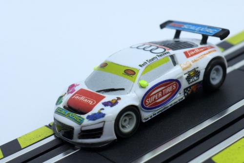 Alan's new Street Stock Audi R8 is a stunning piece of advertising for all our generous sponsors. He's written up an article about making decals to go in the next issue of the South Coast HO Dragster fanzine. And expect a few samples in your return box