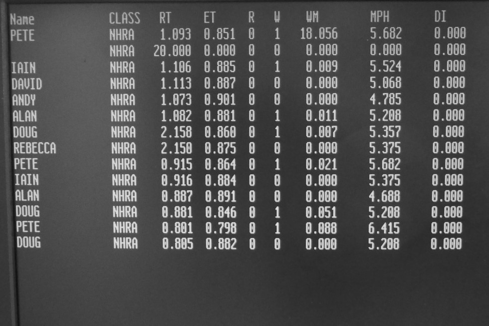 A 0.088 winning margin for Pete - a very rapid 0.798 ET to Doug's 0.882...