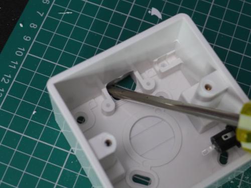 The first thing to do is to create a half inch diameter hole in the surface box to fit the panel-mounted fuseholder…