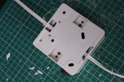 There are also two thinner areas in the walls of the box – front and back – to help with the extra holes I'll be making for the cable. I simply drilled two 3mm holes close together within each of these thin areas - and then used a combination of milling bit and needle file to create rectangular hole the speaker cable fits into snuggly. There are corresponding areas of 'melamine membrane' behind the thin-walled areas which create a path into the box interior. Again, they are removed with a screwdriver...