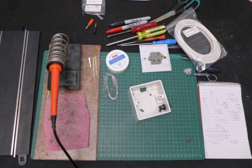 When I do any wiring or soldering, I like to draw my own wiring picture with pen and paper. It’s not anything technical – it’s something that has to make sense to me. I might just be copying a diagram I’ve found online (like the BSCRA diagrams), but the process of drawing helps me decide whether I understand what I’m trying to do. If I don't, it's probably not safe to continue. I can also refer to it on my bench as I work, rather than have to look at a screen. Diagram done, I assemble all my tools and components…