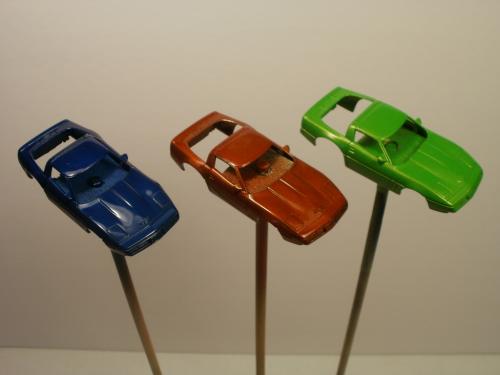 Now I had 6-Corvettes. 3-red ones that looked okay, and 3-ugly black ones with spiders and skull tampos all over them. I remember thinking "Hopefully I'll be able to repaint those if I ever learn how to paint".