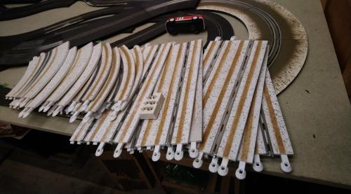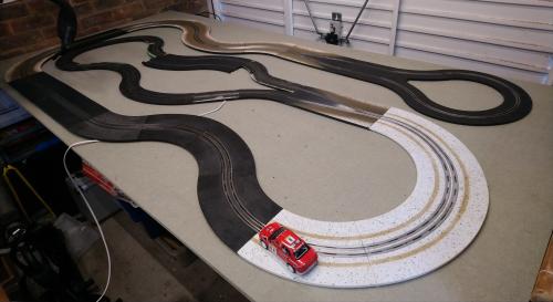 Little did I know that 'snow' pieces are not low grip like the 'ice' ones, they are just standard tarmac painted white! However, I have incorporated the new 'ice' pieces into the layout, and am considering converting the 'snow' pieces into single track pieces and using substituting them into the twisty centre section.